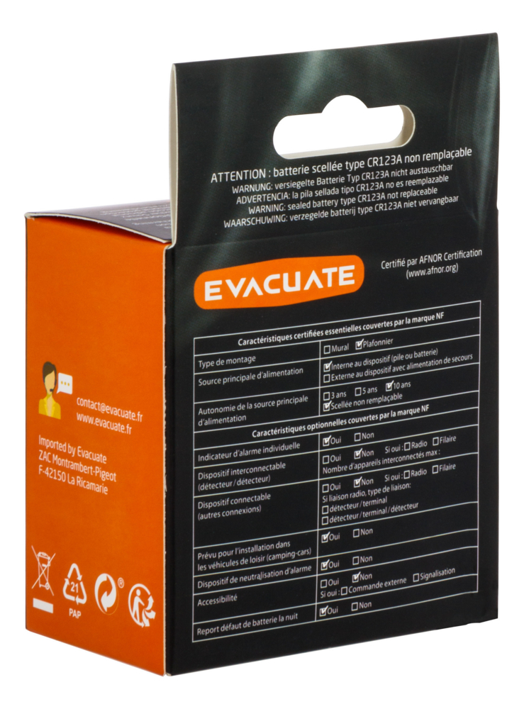 | Libellé | Détecteur de fumée NF autonomie 10 ans |