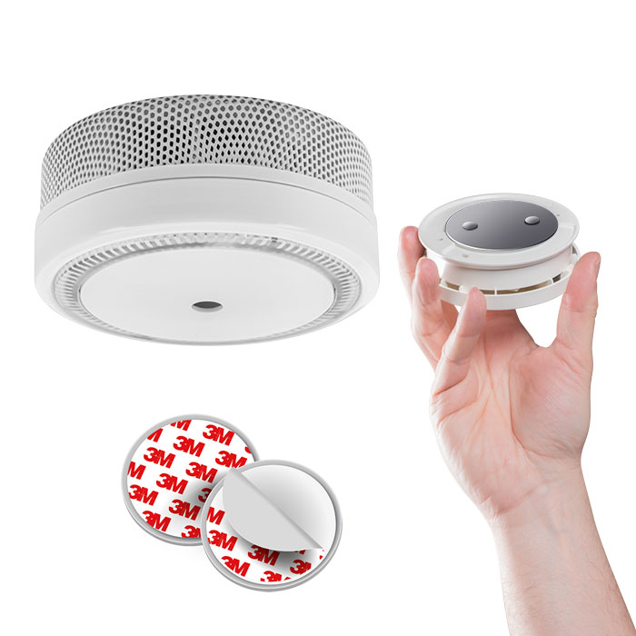 Ce détecteur de fumée (livré avec pile scellée, non remplaçable), muni d'un capteur optique, est destiné à être installé dans des immeubles d'habitation, des appartements et des pièces à usage résidentiel. Le système de fixation Magnetik's se compose d'un élément autocollant à poser au plafond et d'un deuxième élément autocollant avec deux aimants pour la fixation du détecteur de fumée. Les détecteurs de fumée et d'incendie, sont conçus pour avertir rapidement de la présence de fumée et d'incendie, afin de pouvoir réagir de manière adéquate face à cet évènement dangereux. Veuillez toujours consulter les réglementations en vigueur en matière d'avertisseur de fumée.