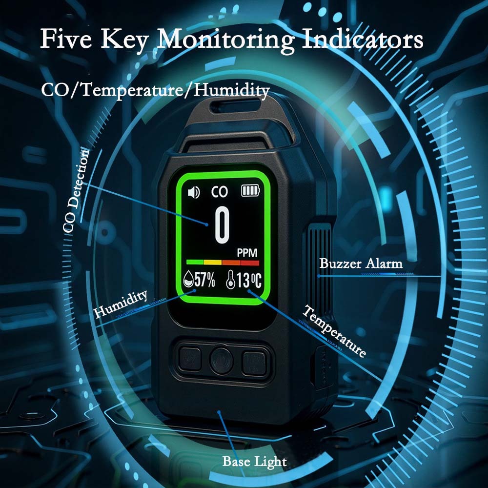 Détecteur de Monoxyde de Carbone Portable: Mesure CO avec Support Magnétique, Lampe LED et Affichage Temp