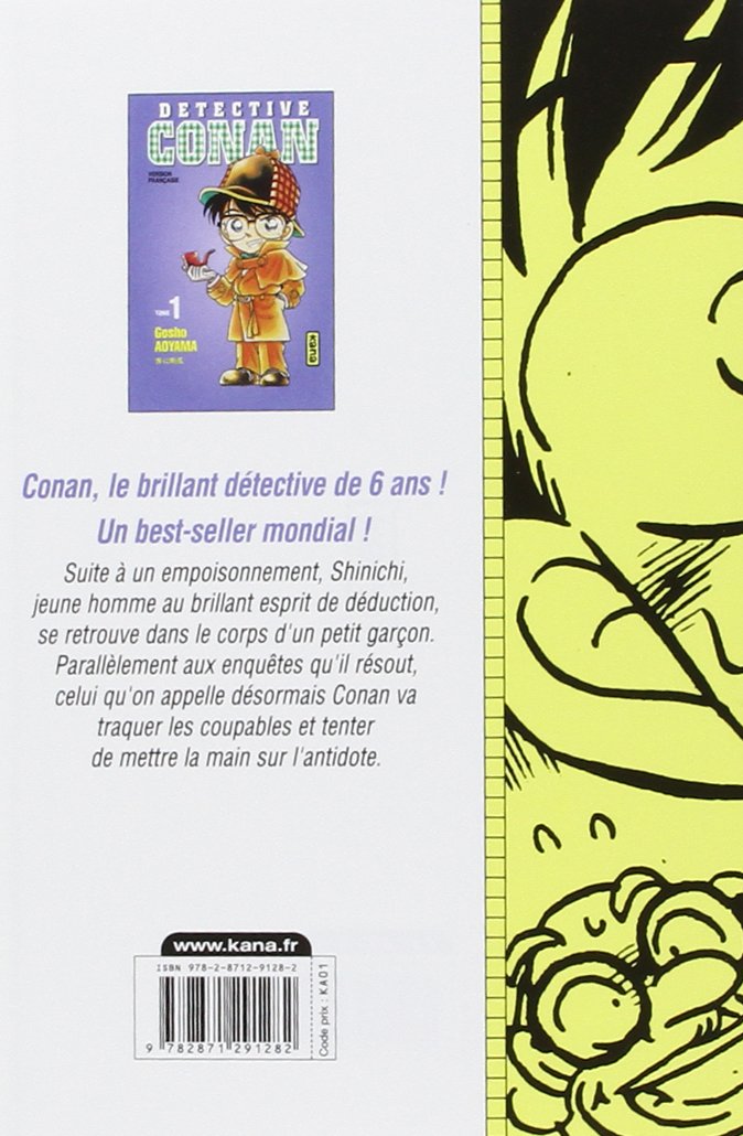 Au cours d'une enquête, il surprend un marché douteux mais est fait prisonnier. Plutôt que de le tuer, les bandits menés par un homme en noir lui font absorber un poison bien étrange. Shinichi se voit alors transformé en garçonnet. Ses parents vivant à l'étranger, il se tourne vers Agasa, mélange de Doc de "Retour vers le Futur" et de Q, le savant fou inépuisable fournisseur de gadgets de James Bond.