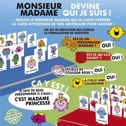 Un jeu spécial d´observation et de déduction. Les joueurs doivent deviner quel est le Monsieur Madame sélectionné par son adversaire.