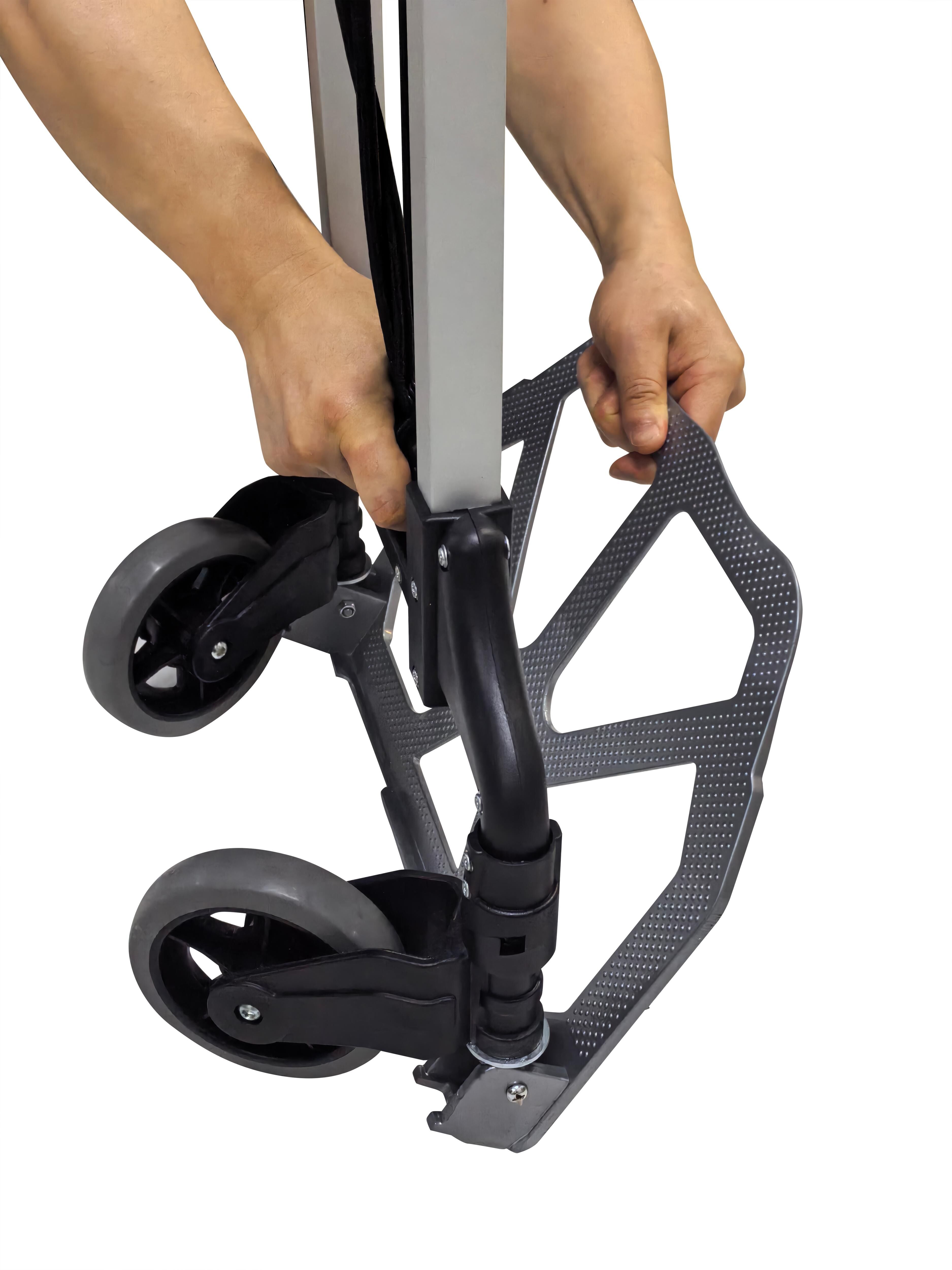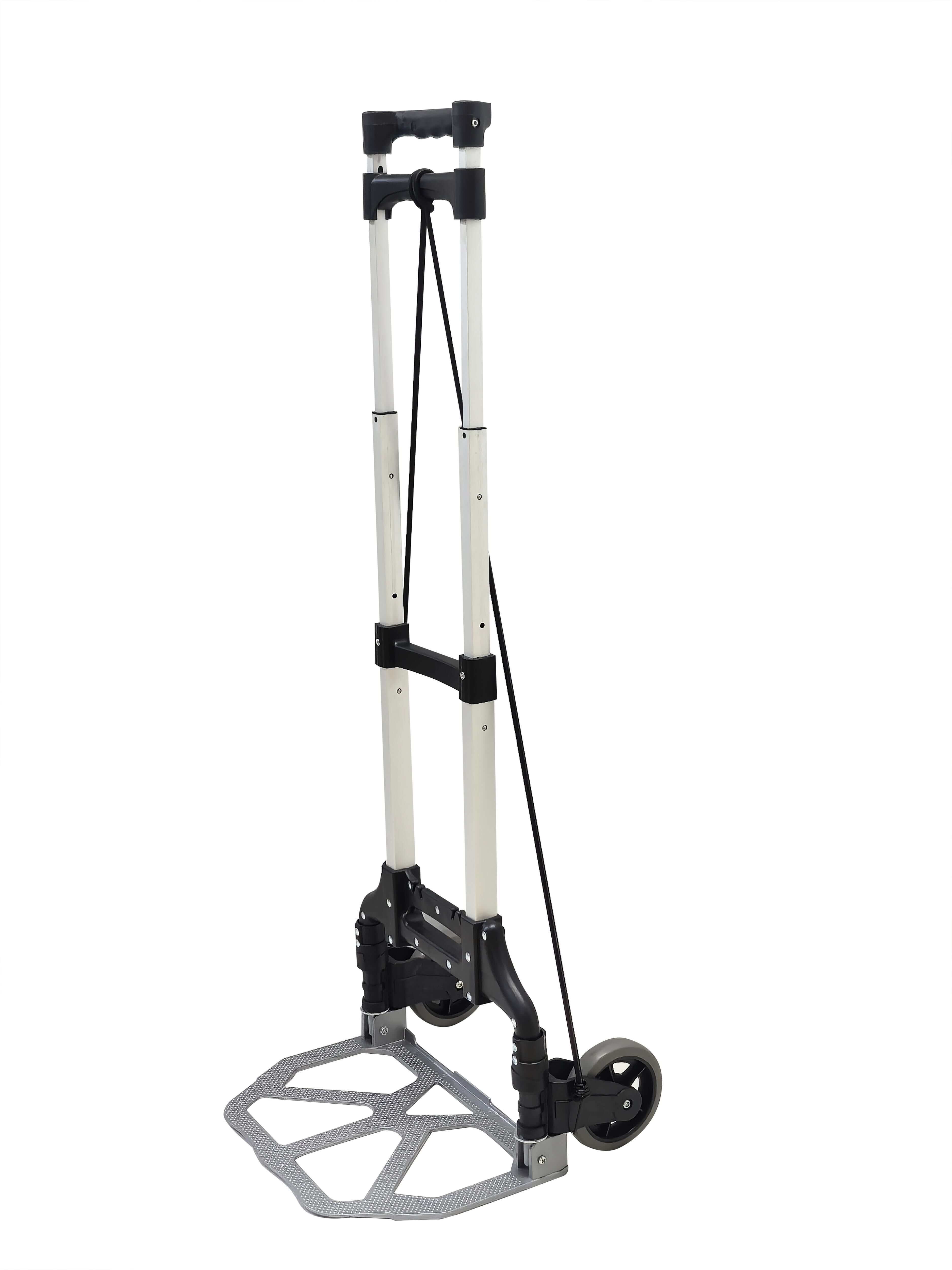 Diable pliable - Sélection d'Experts - Foxter Compact Poignée télescopique Cordons élastique inclus La capacité de charge maximale est de 70KG. Dimensions plateforme: 27 x 38.5cm Poids: 3KG