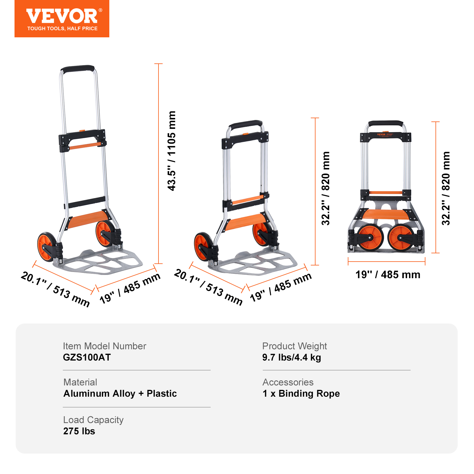 Robuste Comme un Char d'Assaut : Nous savons que la durabilité est importante, c'est pourquoi notre diable est fabriqué à partir d'un alliage d'aluminium léger mais robuste. Résistant à la corrosion, il résiste à l'épreuve du temps. La poignée est réglable pour s'adapter à différents utilisateurs et tâches. Vous avez là un compagnon fiable qui ne vous laissera pas tomber !