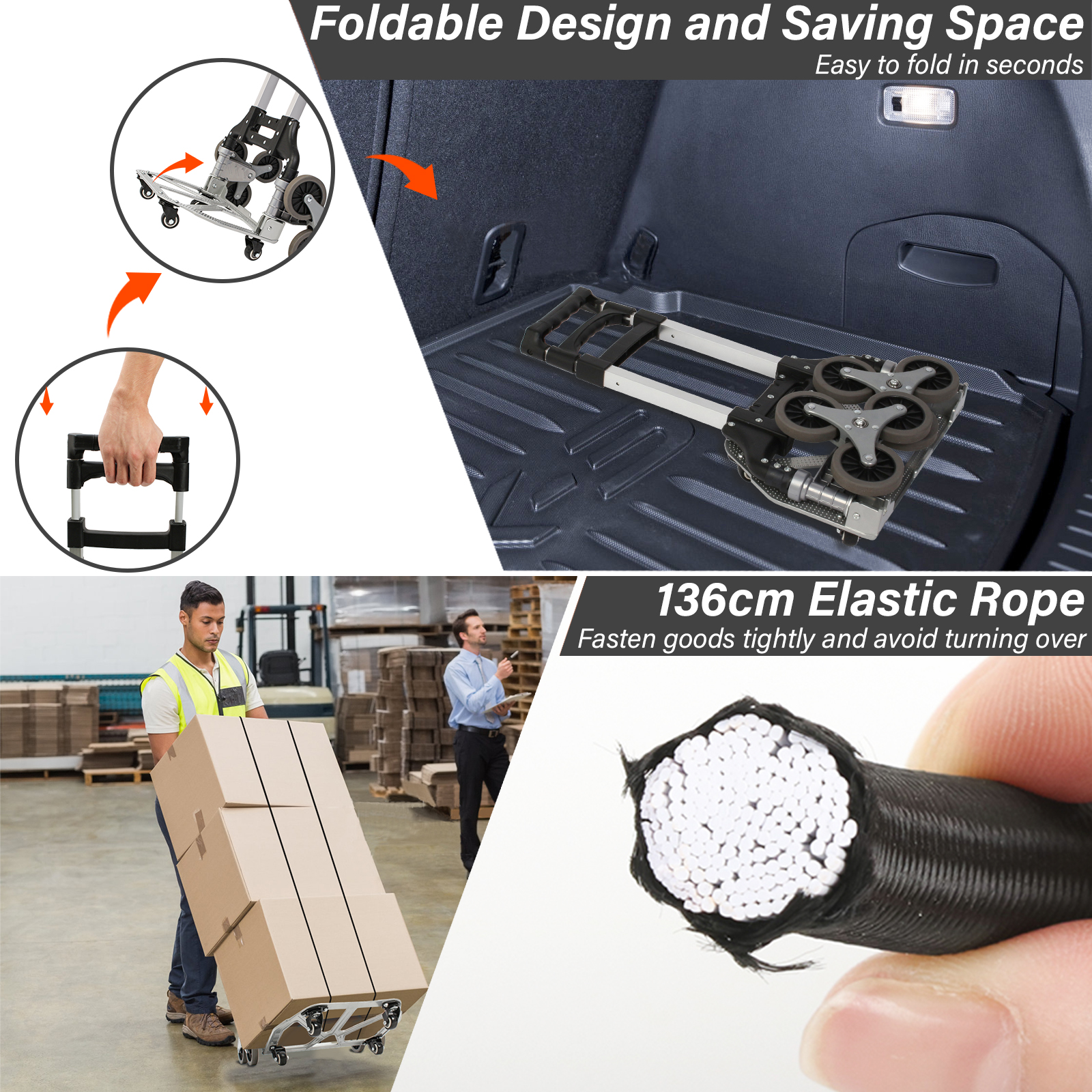 | Libellé | Diable Pliant Léger en Aluminium à 10 Roues, Chariot Demenagement Pliable avec Cordes d'expansion, Réglage en Hauteur, 4X Quatre Roues Universelles |