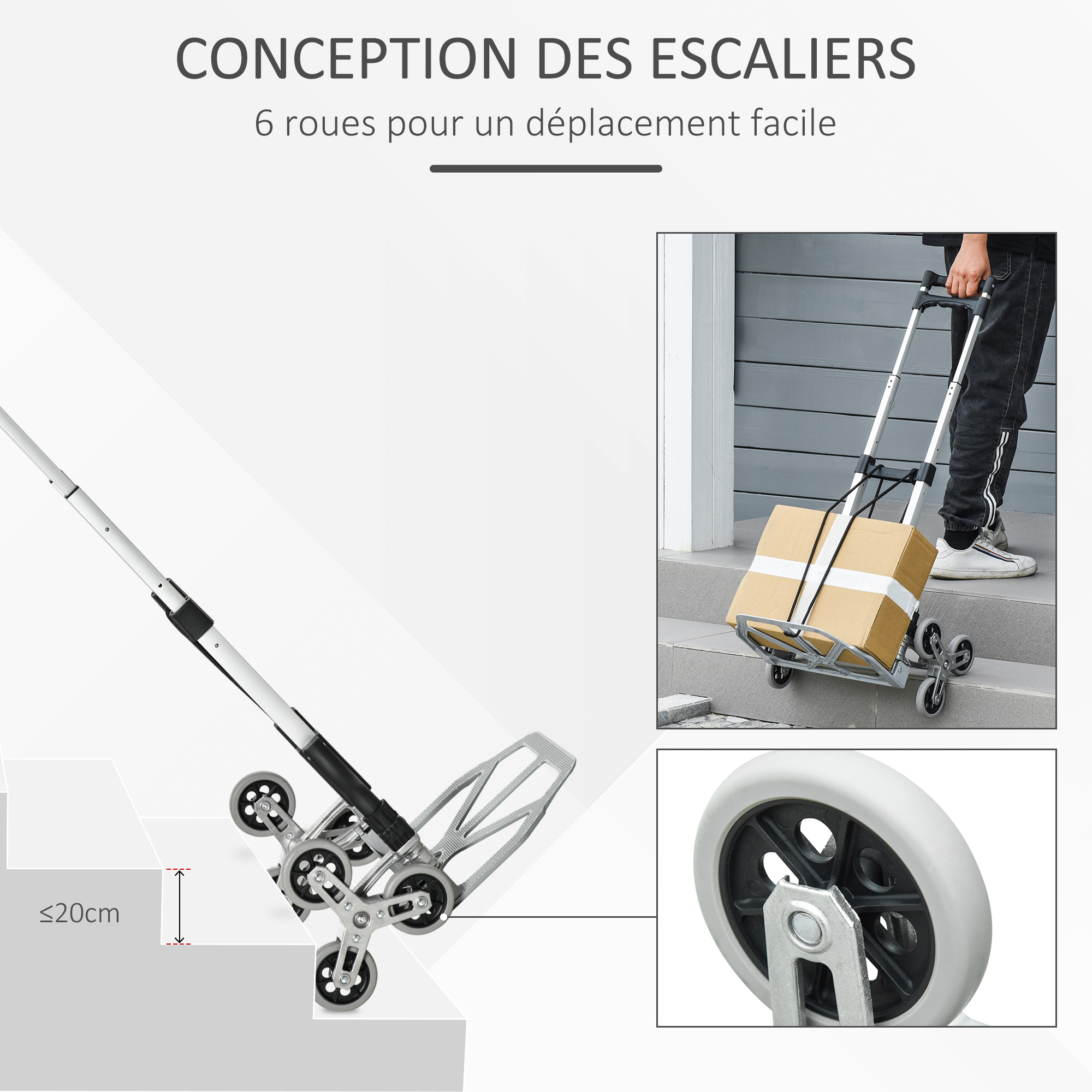 Diable pour escalier 6 roues diable repliable 70 Kg - poignée télescopique - chariot de manutention pliab