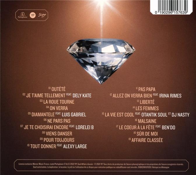 Après le succès de son dernier album 'Rêver' avec les tubes \"Tahiti\" et \"Je garde le sourire\", Keen'V présente son 10ème album 'Diamant'. On y retrouve 19 titres inédits dont ses récents succès \"Outété\" et \"Affaire classée\"!