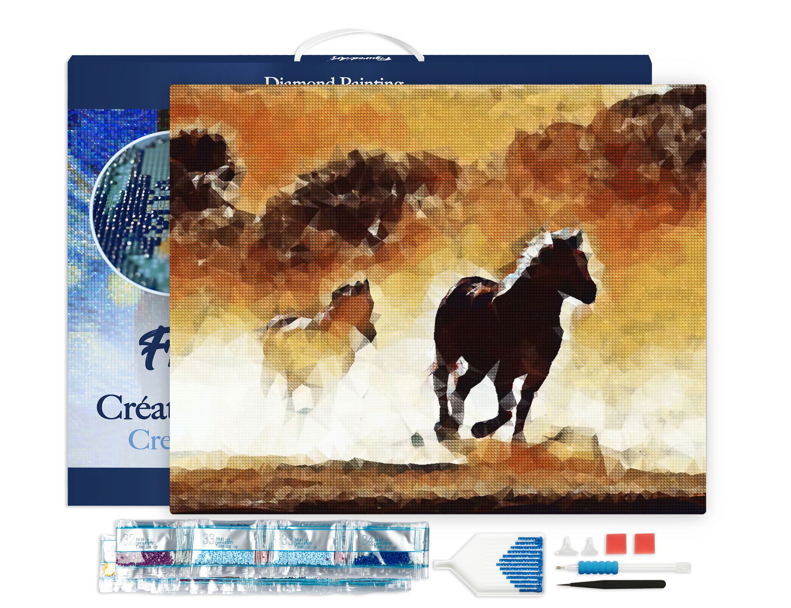 Diamond Painting - Broderie Diamant Figured’Art Avec Cadre - Chevaux en action - 40x50cm Toile Entière te