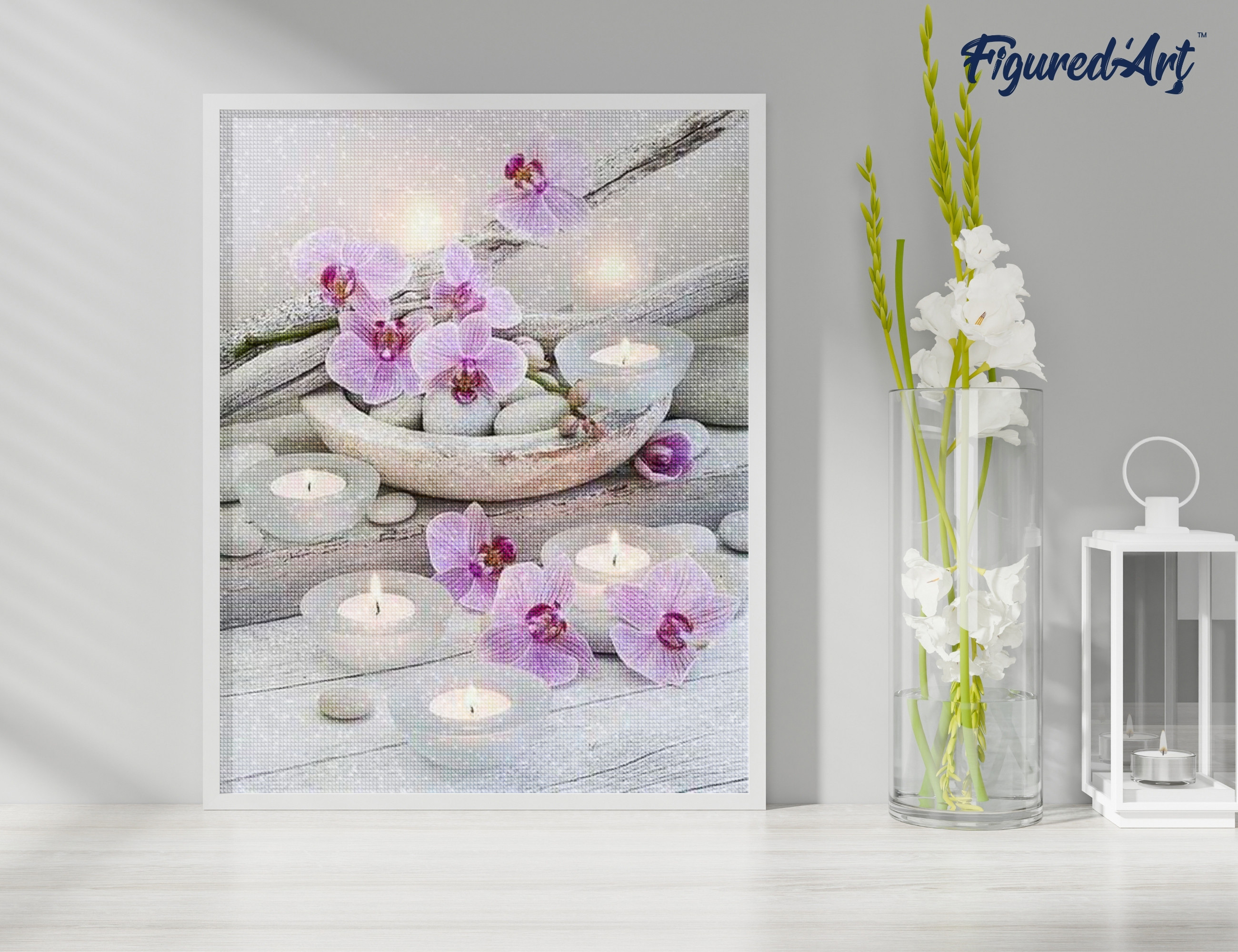 Diamond Painting - Broderie Diamant Figured’Art Avec Cadre - Fleurs et Bougies - 40x50cm Toile Entière te