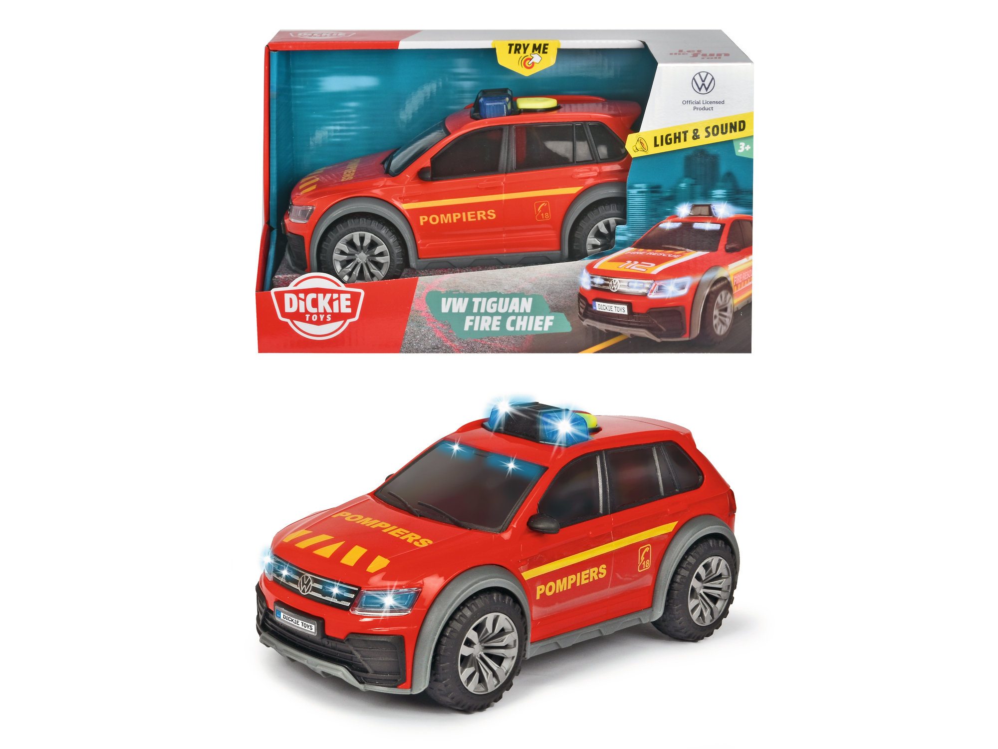 Tu pourras rapidement intervenir avec le VW Tiguan aux couleurs des pompiers ! Ce véhicule des soldats du feu à échelle 1/18ème (25cm) avance en roue libre et possède des effets sonores et lumineux. Tu pourras faire retentir les sons et la lumière à chaque intervention ! 2 piles LR6 incluses. A partir de 3 ans.