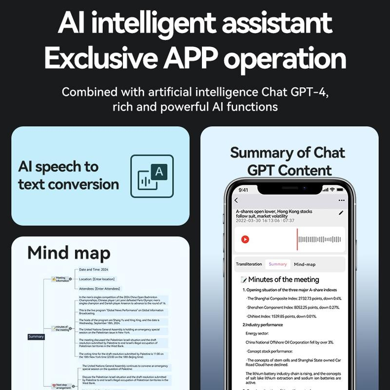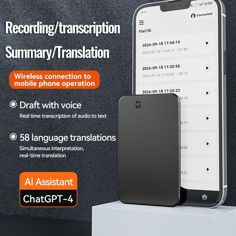 Ce dictaphone avancé est conçu pour répondre à tous vos besoins d'enregistrement avec sa capacité de 32GB et son contrôle via application. Il prend en charge 58 langues pour une interprétation et transcription simultanées, améliorant ainsi votre efficacité au travail.