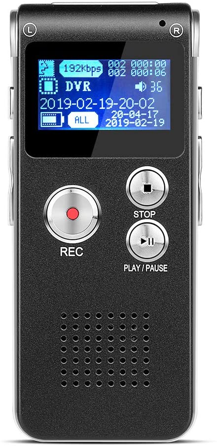 Opération simple: boutons de fonctionnement faciles à comprendre, allumez simplement votre enregistreur vocal, appuyez sur "REC", il enregistre votre conférence distinguée, vos moments; Appuyez sur "STOP" pour sauvegarder vos enregistrements en toute sécurité; Appuyez sur "PLAY", écoutez ce que vous venez d'enregistrer, puis appuyez sur A-B, sélectionnez votre section appropriée à répéter.Enregistreur audio stéréo haute fidélité: les microphones à condensateur omnidirectionnels sensibles intégrés disposent d'un enregistrement de 192 kbit / s de très haute qualité (SHQ) vous permettant de saisir clairement les mots lors d'une interview, d'un cours, d'une réunion ou d'un discours.8 Go intégrés et transfert de fichiers rapide: processeur haute performance avec 8 Go de stockage suffisant qui permet d'enregistrer jusqu'à 46 heures en mode SHQ. Lorsqu'il est complètement chargé, il peut faciliter la tâche d'enregistrement jusqu'à 20 heures. Chargez et téléchargez rapidement des fichiers sur votre PC, Mac et ordinateur portable via le port USB.Enregistreur activé par la voix: détecte le bruit environnant et démarre automatiquement l'enregistrement, ne saisissez que les mots, plus d'extraits de silence ou de chuchotement dans vos enregistrements à nouveau!Enregistreur de lecteur MP3: cet enregistreur de son avec lecteur MP3, lisez vos disques ou profitez de la musique pour vous détendre après votre étude ou votre réunion fatiguée. La taille portable est facile à transporter dans votre poche. L'égaliseur intégré peut affiner le son en 7 types de styles: Natural, Rock, Pop, Classic, Soft, Jazz et Dynamic Bass Boost.