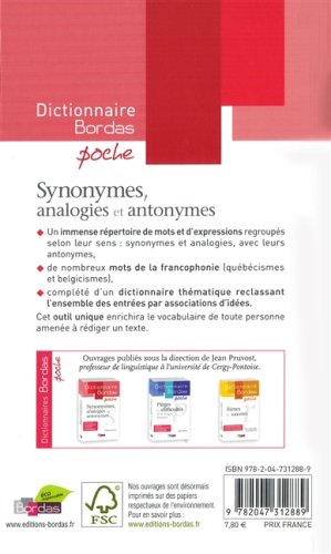| Libellé | Dictionnaire Bordas poche Synonymes, analogies et antonymes (Broché) |