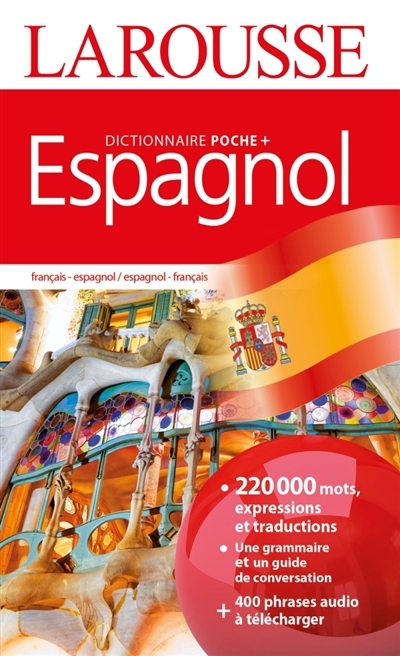 Dictionnair poche+ Espagnol Ultra pratique, actuel et complet ! Pour enrichir son vocabulaire . 220 000 mots, expressions et traduction . Le vocabulaire le plus récent . De très nombreux exemples . Plus de 2000 latino-américanismes Pour progresser . Du vocabulaire thématique . Des rappels de grammaire . Les expressions les plus courantes . Des informations culturelles + Une grammaire détaillée + Un guide de conversation + 400 phrases à télécharger sur www.editions-larousse.fr/poche-espagnol