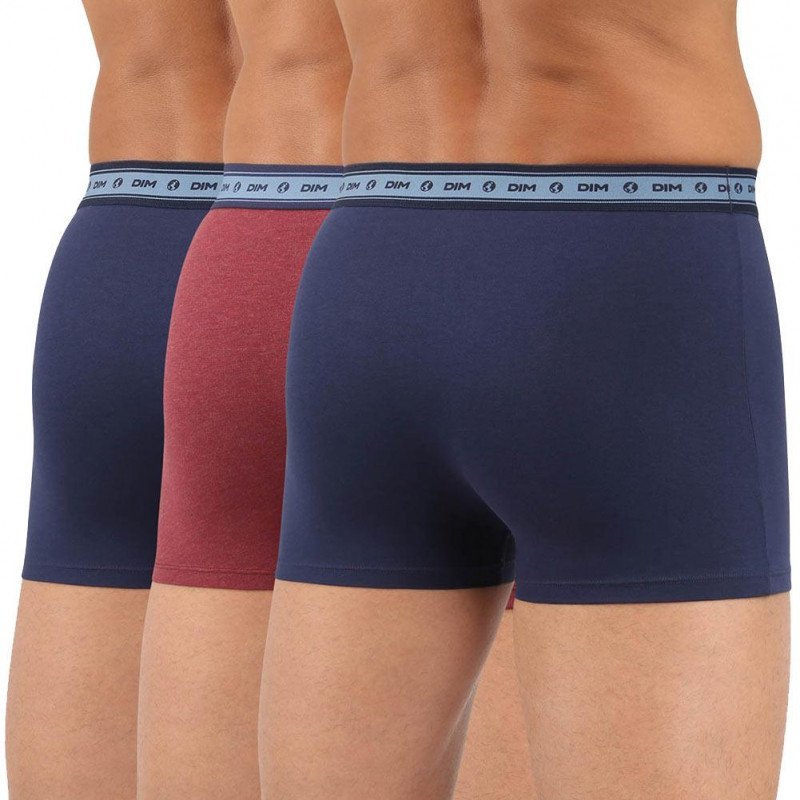 | Libellé | DIM Lot de 3 Boxers Homme Coton BIO Bleu denim Rouge vin |