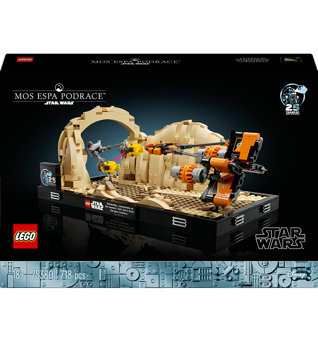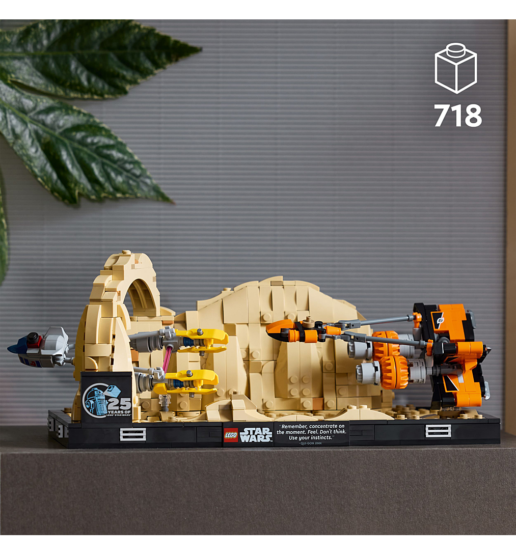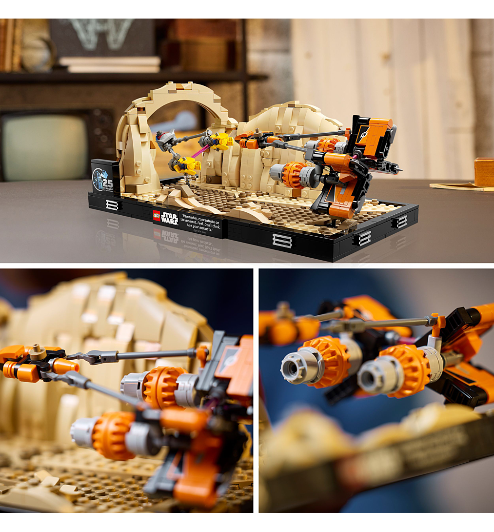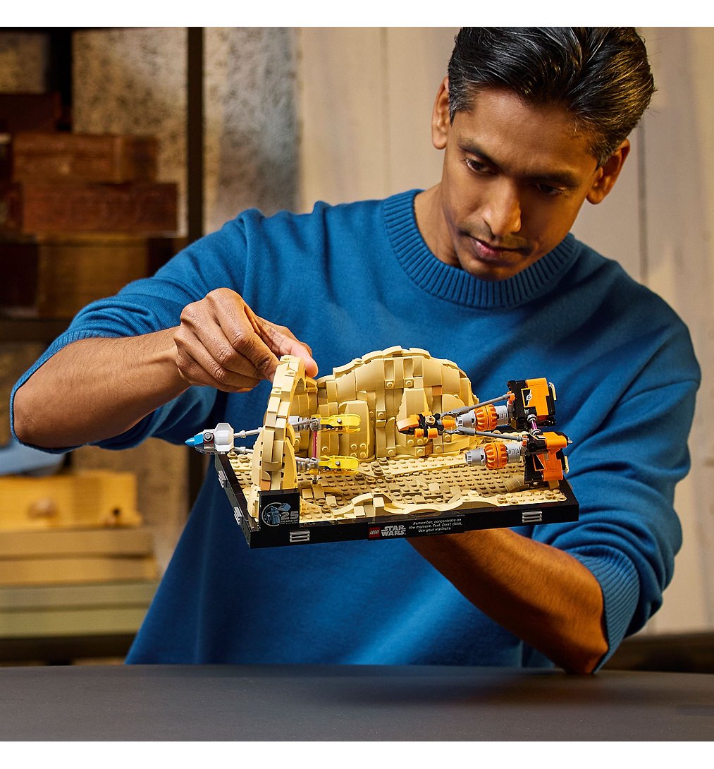 Faites un arrêt sur image dans la passionnante course de podracers de Mos Espa avec ce diorama LEGO Star Wars (75380) pour adultes. Ce set collector vous invite à maîtriser la Force, comme Anakin Skywalker dans Star Wars : La menace fantôme, et à créer une scène en briques LEGO représentant son podracer s’élançant à la poursuite de son rival Sebulba dans le Canyon de l’Arche. Cet impressionnant modèle à construire et à exposer rappelle les conseils de Qui-Gon Jinn (« Remember. Concentrate on the moment. Feel. Don't think. Trust your instincts.) et inclut une brique 25e anniversaire de LEGO Star Wars. L’application LEGO Builder enrichit votre expérience avec des outils permettant, entre autres, de zoomer et de faire pivoter une version 3D numérique de ce modèle pendant la construction. Faisant partie d’une collection LEGO Star Wars pour adultes incluant d’autres dioramas de scènes culte, ce set est un fabuleux cadeau à s’offrir ou à offrir à un adulte fan de Star Wars.
