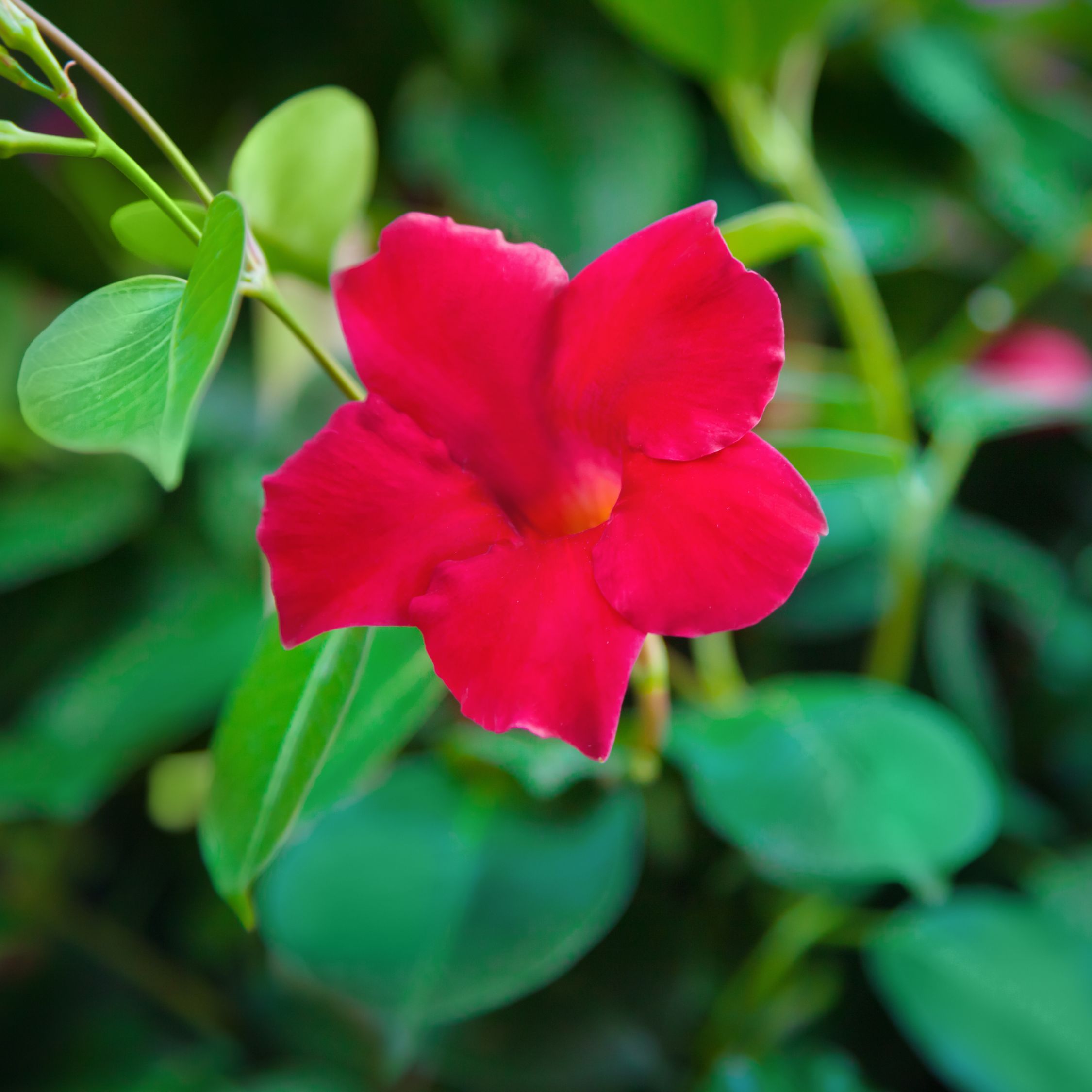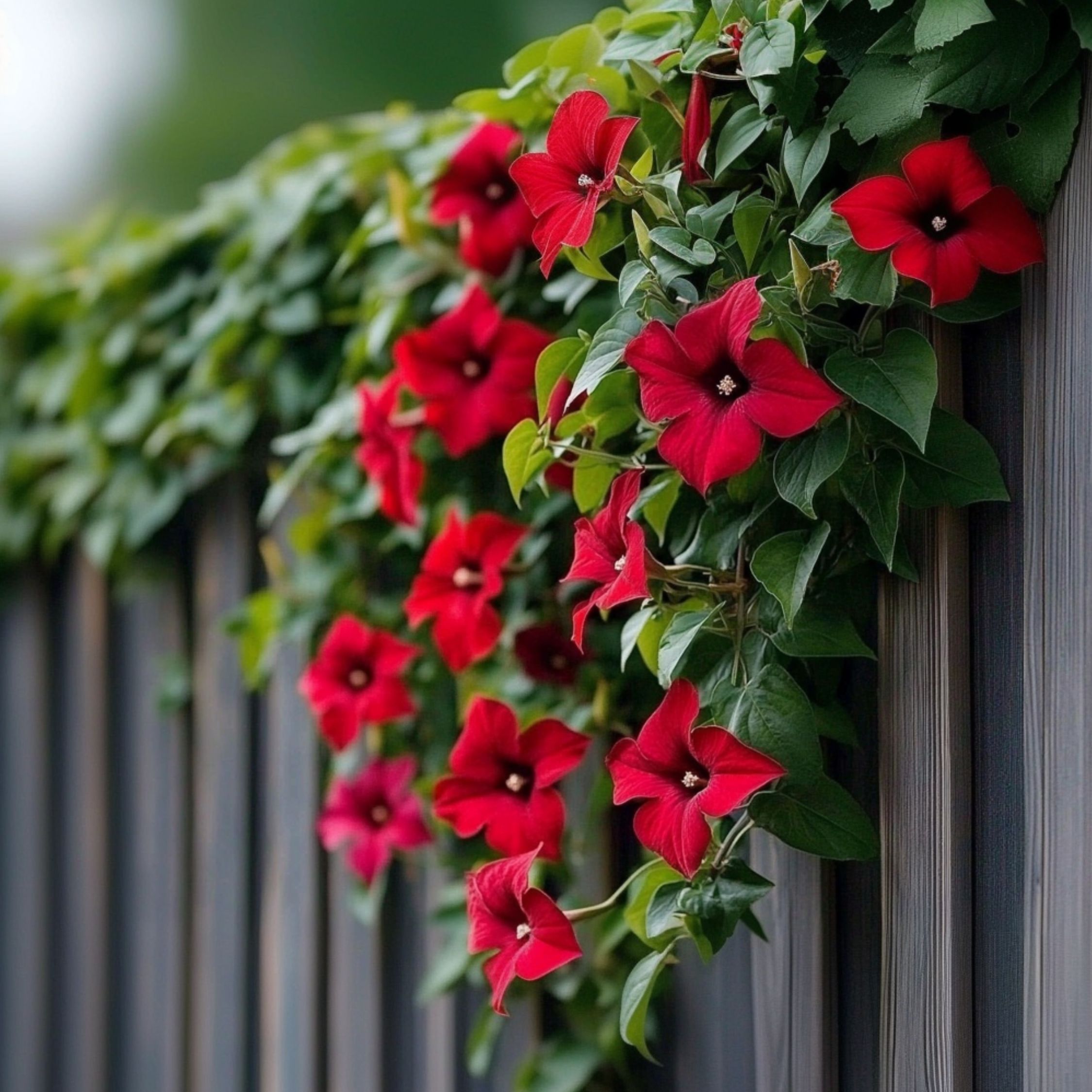 Plus produit Plante tropicale grimpante aux fleurs rouge profond. Facile d’entretien, très florifère et aimant le soleil – un choix idéal pour balcons et jardins.