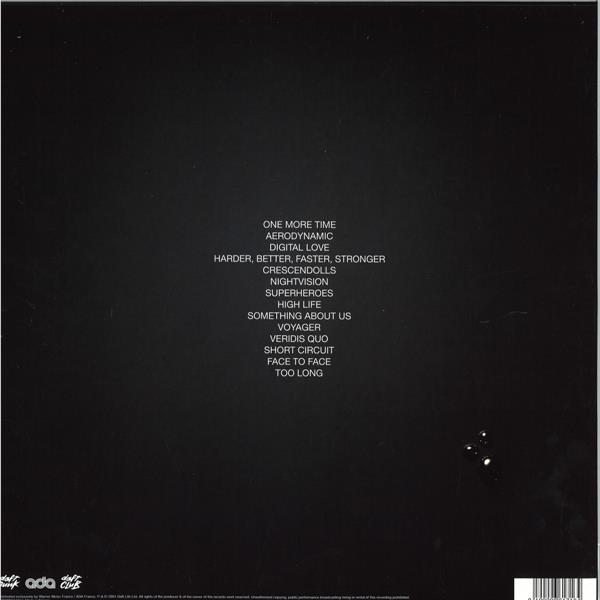 À NOUVEAU DISPONIBLE : \"DISCOVERY\" le chef d'oeuvre de DAFT PUNK en double vinyle pochette originale. Inclus : \"veridis quo\", \"one more time\", \"harder better faster stronger\"... Apple Music l'a classé à la 23ème place des plus grands albums de tous les temps. Il fait également partie des listes des meilleurs albums de Rolling Stone, Pitchfork, Rhapsody, Resident Advisory, BBC Radio 1, British GQ. Discovery a été certifié disque d'or aux Etats-Unis, disque de platine au Japon, double-disque de platine au Royaume Uni et triple-disque de platine en France.