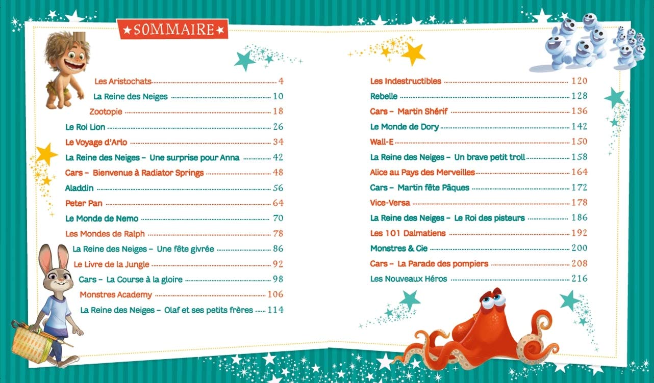 Un recueil de 30 histoires pour le soir pour revivire les aventures des personnages des Grands Classiques Disney: Le livre de la jungle, Le Roi Lion, .. Aventure et humour seront au rendez-vous dans ce recueil thématisé ! Un format broché épais avec coins ronds, idéal pour instaurer un rituel de lecture avec les enfants dès 4 ans ou pour encourager les plus grand à la lecture autonome.