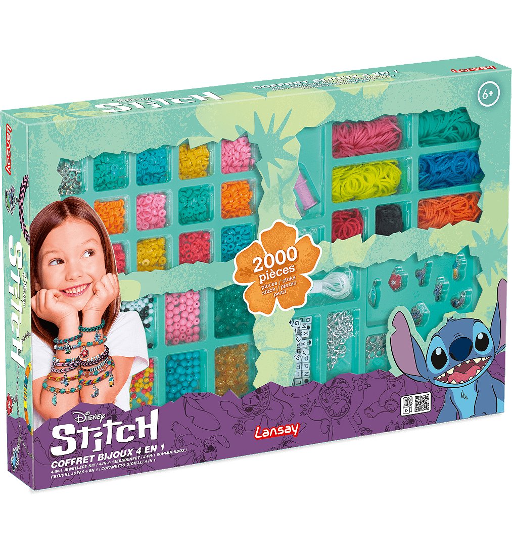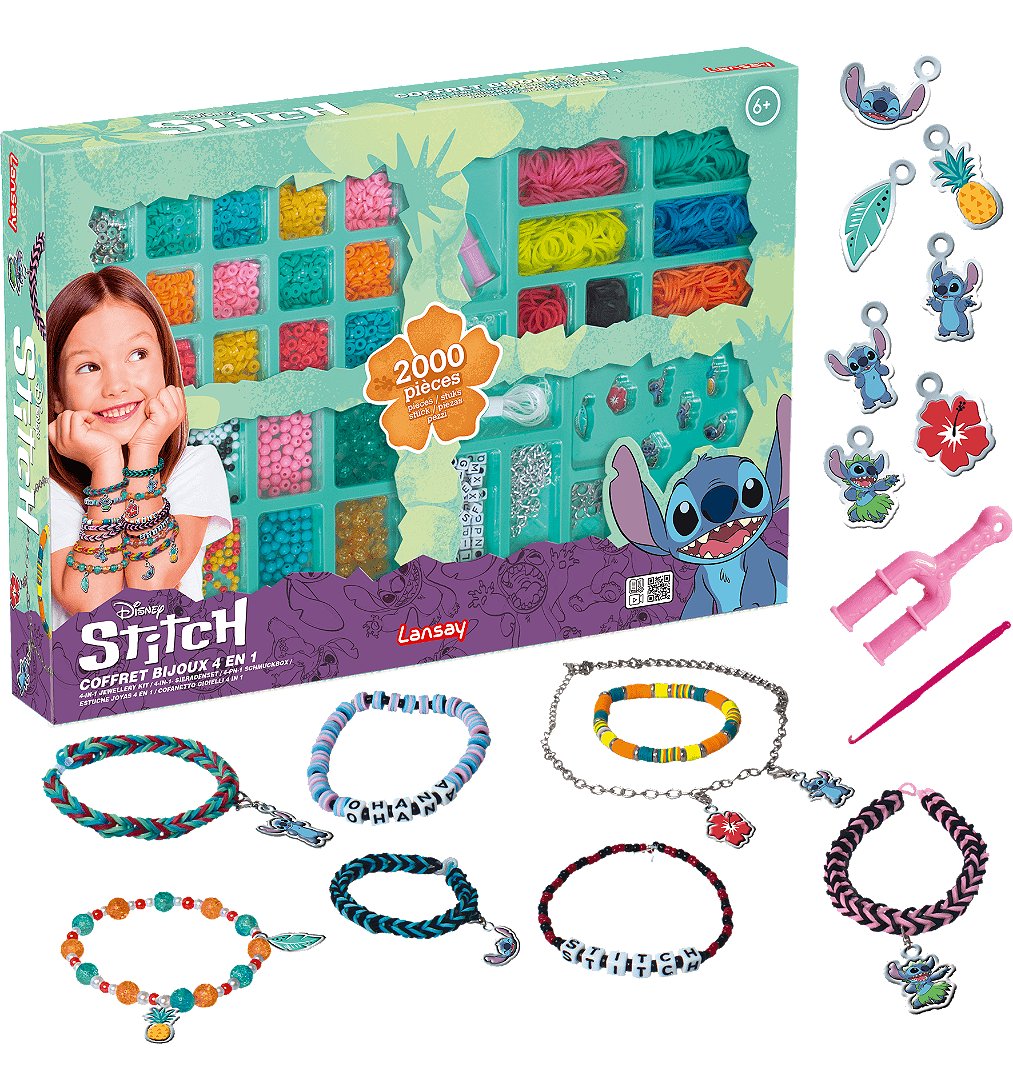 Avec le Coffret Bijoux 4 en 1, crée et personnalise tes bracelets à l’effigie de Stitch avec les 4 activités incluses. Dès 6 ans.Dimensions:30 x 6 x 27cm
