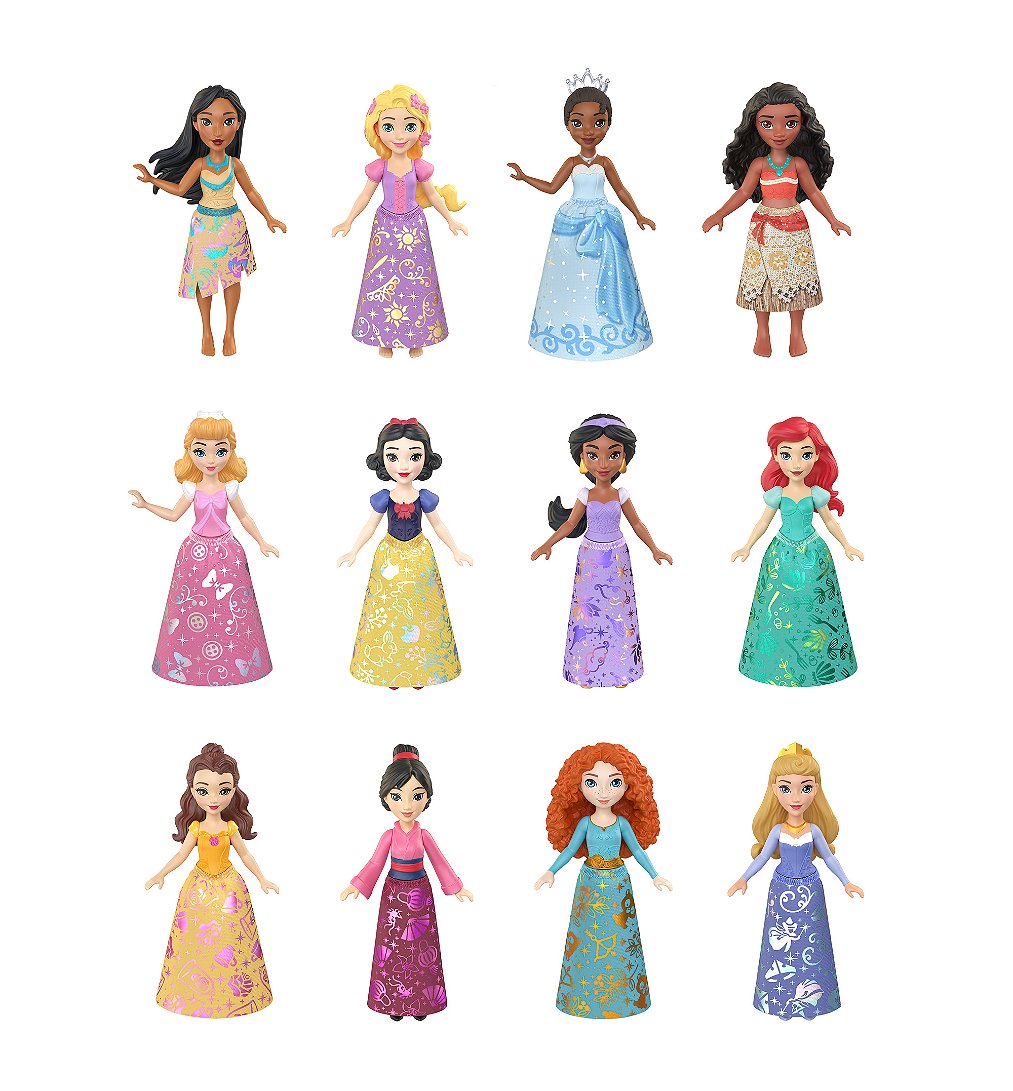Disney Coffret Princesses Ultime avec 12 petites poupées articulées en tenue emblématique, inspirées des films Disney