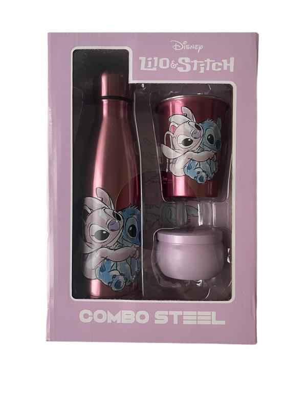 Disney Combo Steel Lilo & Stitch Pink Edition Stitch & Angel Exclu Leclerc Ce pack contient : - 1 bouteille - 1 verre - 1 plateau - 1 range bijoux.