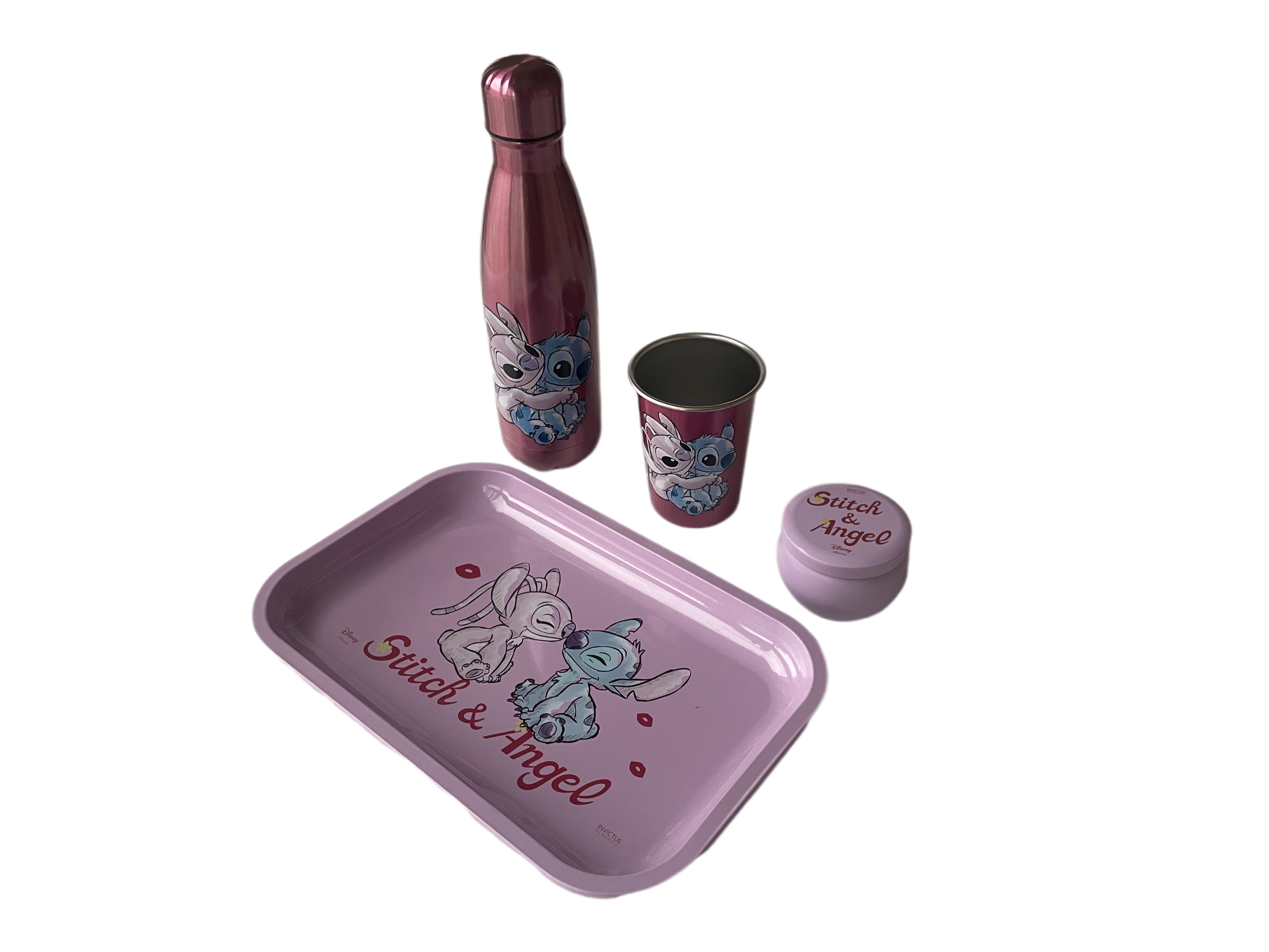 Disney Combo Steel Lilo & Stitch Pink Edition Stitch & Angel Exclu Leclerc Ce pack contient : - 1 bouteille - 1 verre - 1 plateau - 1 range bijoux.