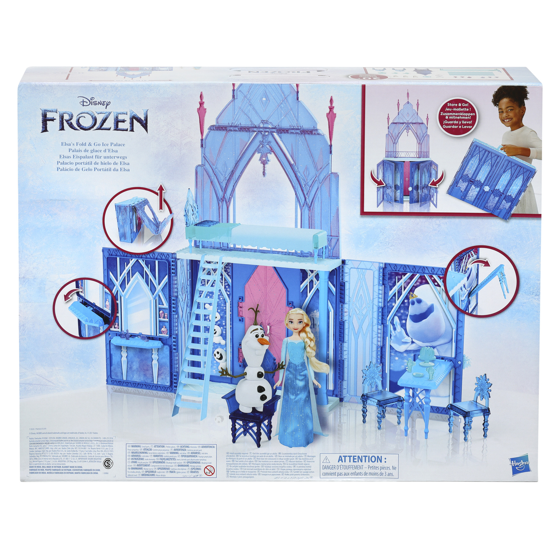 | Plus produit | PALAIS DE GLACE D\'ELSA : La poupée mannequin Elsa est vendue avec ce coffret château repliable qui inclut un rangement pour accessoires et une poignée de transport OLAF ET 20 ACCESSOIRES : Ce jouet de La Reine des neiges de Disney inclut un trône, un lit, une couverture, 2 chaises, des friandises, des accessoires de coiffeuse, Elsa et Olaf UNE GRANDE AVENTURE : Le palais d\'Elsa mesure 86 cm x 78 cm 2 ÉTAGES POUR JOUER : On lève le premier étage, puis on abaisse la table et la coiffeuse D\'AUTRES JOUETS DE LA REINE DES NEIGES 2 À COLLECTIONNER : D\'autres jouets de La Reine des neiges, dont la poupée Anna, sont aussi disponibles pour remplir le palais d\'un amour fraternel (vendus séparément, dans la limite des stocks) |