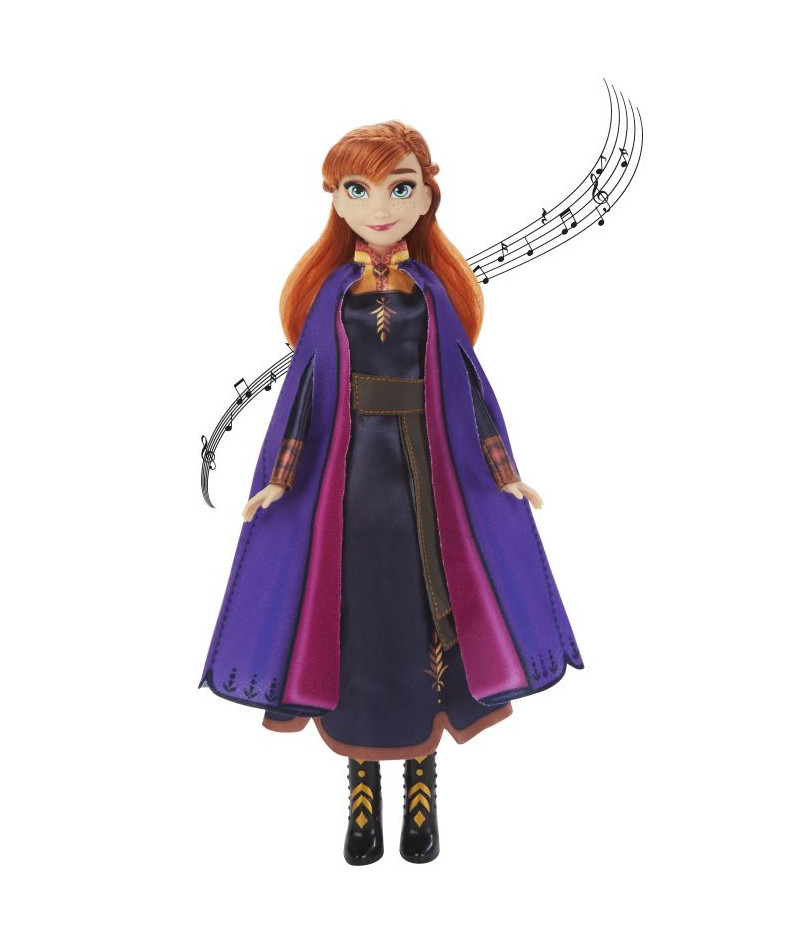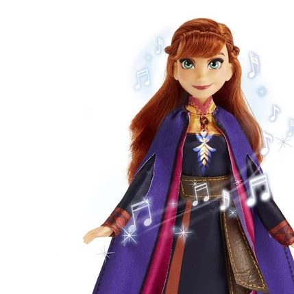 Dans La Reine des neiges 2 de Disney, Anna se lance dans un périple loin de la maison qui mettra son optimisme inébranlable et sa persévérance à l'épreuve. Anna devra apprendre à rester forte et à faire les bons choix, même si cela semble impossible. Cette poupée Anna chantante a de longs cheveux roux et porte une tenue inspirée du film. Il suffit d'appuyer sur le bouton du body de la poupée musicale pour entendre un extrait de « Je peux si je le veux », une chanson originale du film La Reine des neiges 2. De plus, en appuyant sur le bouton, les enfants verront la robe d'Anna s'illuminer pour imaginer une scène magique. La jolie robe noire aux accents violets et roses de la poupée est vendue avec des bottes amovibles. Aussi inspirée du film La Reine des neiges 2, la poupée Elsa chantante (vendue séparément ; dans la limite des stocks) est également disponible pour entendre les 2 poupées interpréter des chansons du film et imaginer des scènes avec les deux surs bien aimées d'Arendelle.