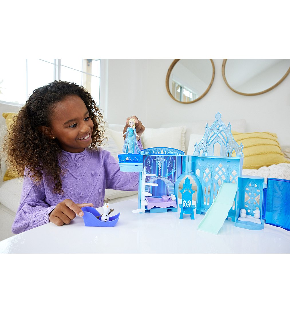 Les fans vont adorer ce coffret emblématique Palais de Glace d’Elsa, inspiré du dessin animé La Reine des neiges de Disney ! Cette petite maison de poupée, charmante à souhait, représente le Palais de Glace d’Elsa et s’ouvre en deux pour révéler plusieurs zones de jeu, une poupée Elsa, une figurine Olaf, du mobilier et plus encore. Le coffret est doté d’une poignée pour l’emporter partout et peut se connecter à d’autres coffrets de la collection Histoires à Empiler pour étendre le royaume. Chaque coffret est vendu séparément. Certains produits peuvent ne pas être commercialisés. Les poupées ne tiennent pas debout toutes seules. Les couleurs et les décorations peuvent varier.