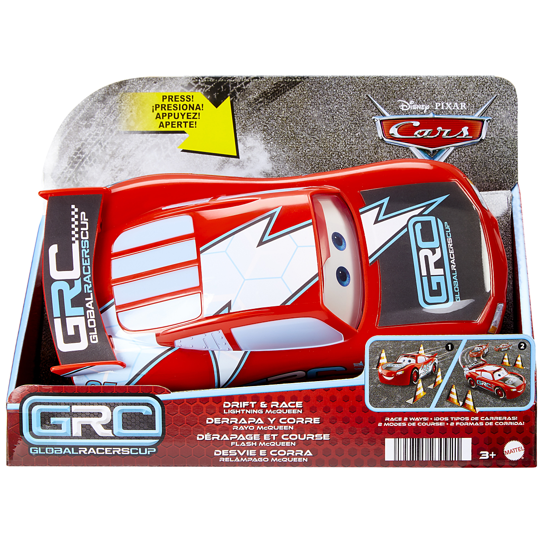 Avec deux modes pour faire des courses trépidantes, cette voiture Flash McQueen de Disney · Pixar Cars est prête pour foncer à toute allure et effectuer des dérapages impressionnants ! La Coupe mondiale de course réunit à Radiator Springs la crème de la crème de la course internationale. Flash McQueen Course et dérapages est prêt à passer à l’action, avec un mode dérapages et un mode course. Les enfants peuvent sélectionner le mode avec le bouton situé sous le jouet, puis tirer la voiture vers l’arrière et la regarder s’élancer ! Les quatre cônes en papier inclus garantissent une course en ligne droite ou tiennent lieu d’obstacles de dérapage pour des cascades encore plus amusantes ! Appuyez sur le bouton situé sur la tête de Flash McQueen pour lui faire prendre son expression déterminée pendant les courses. Les enfants et les fans à partir de 3 ans vont adorer imaginer des histoires sur le thème de la course automobile. Les couleurs et les décorations peuvent varier.