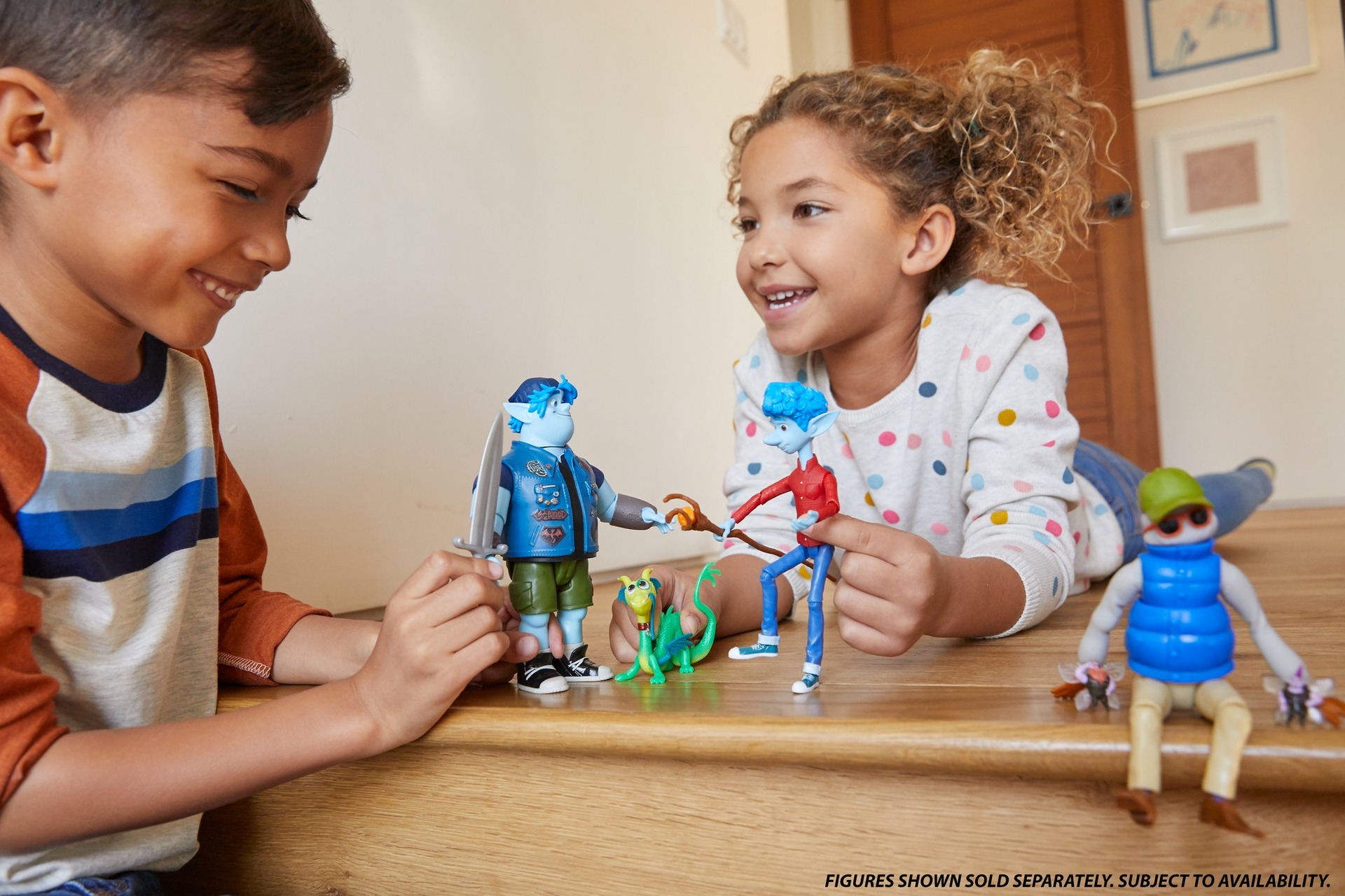 Dans le film En avant de Disney-Pixar, deux frères elfes doivent quitter le confort de leur maison de banlieue pour aller de lavant à la découverte de la magie qui subsiste encore quelque part dans le monde. Ce coffret inclut une figurine Ian Lightfoot aux détails authentiques et entièrement articulée, son bâton de magicien et une figurine de son fidèle compagnon, le dragon Blazey.