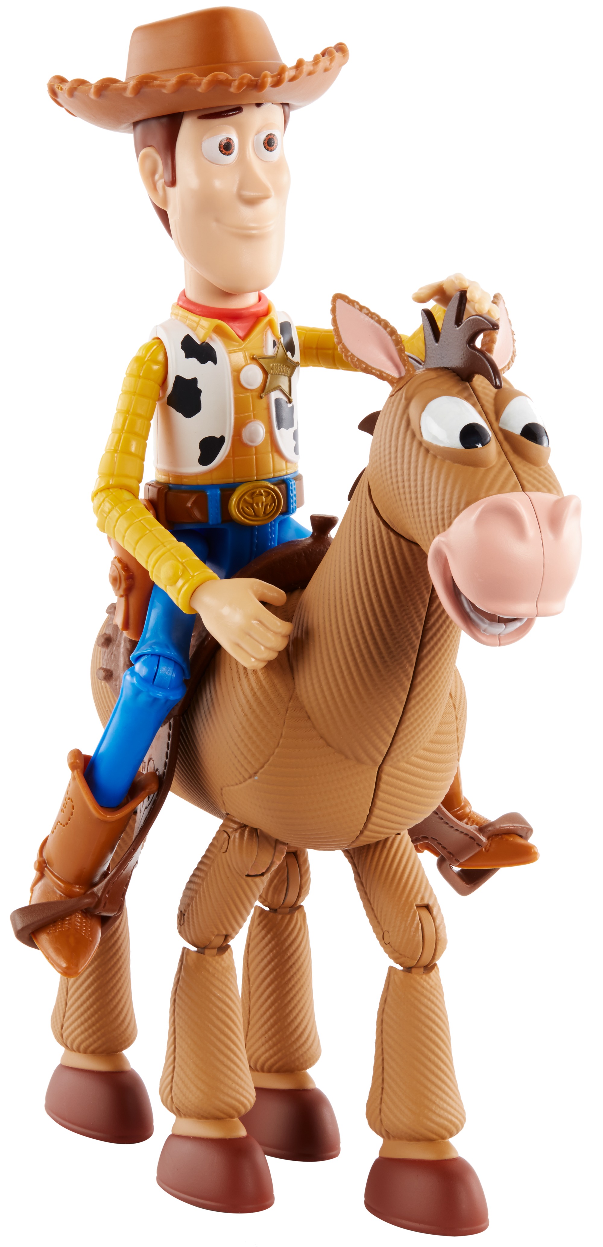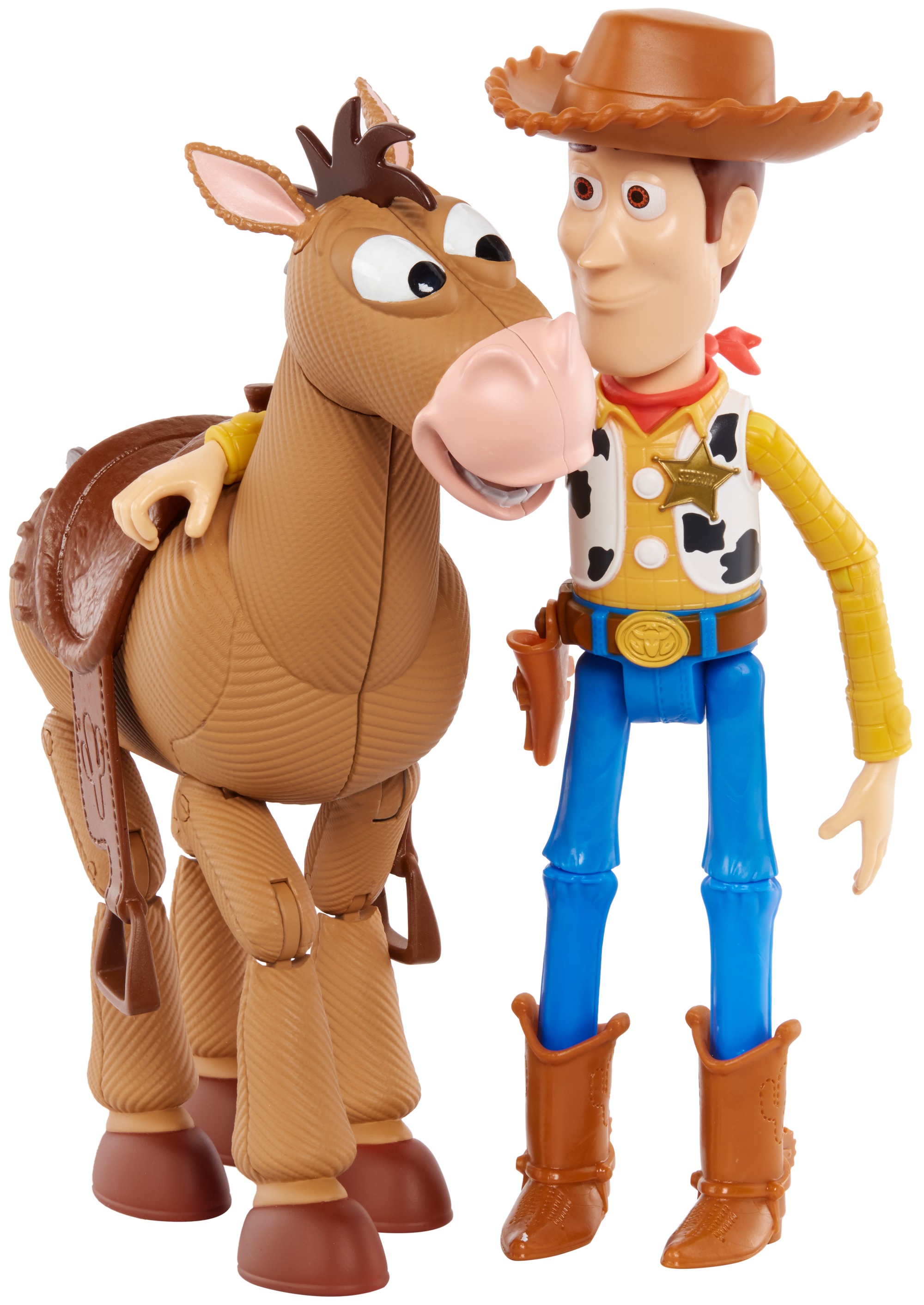 Les personnages de Toy Story 4 des studios Disney Pixar sont enfin réunis pour vivre des aventures passionnantes ! Vêtues de leur tenue emblématique, les figurines articulées peuvent prendre de très nombreuses postures et affichent une expression unique. Recréez vos scènes préférées avec Woody et son fidèle compagnon Pile-Poil, inspirés des vrais personnages du film ! Placez le shérif Woody sur la selle et laventure Toy Story peut commencer.