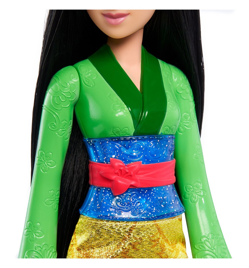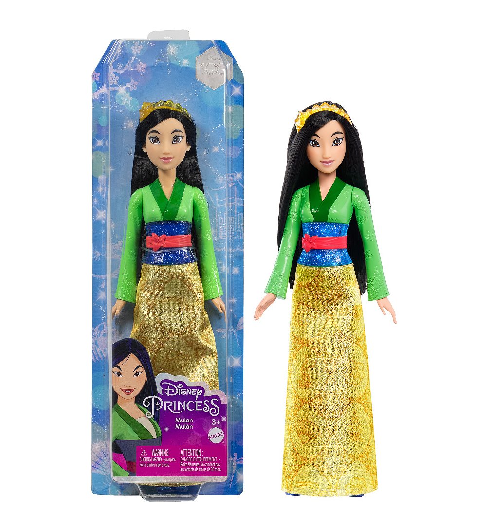 Donnez vie à la courageuse et déterminée héroïne du grand classique Disney avec cette poupée Mulan ! Cette poupée articulée porte une tenue et des accessoires scintillants incluant des chaussures et un diadème. Elle reprend le look signature du personnage de Mulan dans le film et, comme elle, elle est prête à vivre toutes sortes d’aventures ! La poupée ne tient pas debout toute seule. Les couleurs et les décorations peuvent varier.