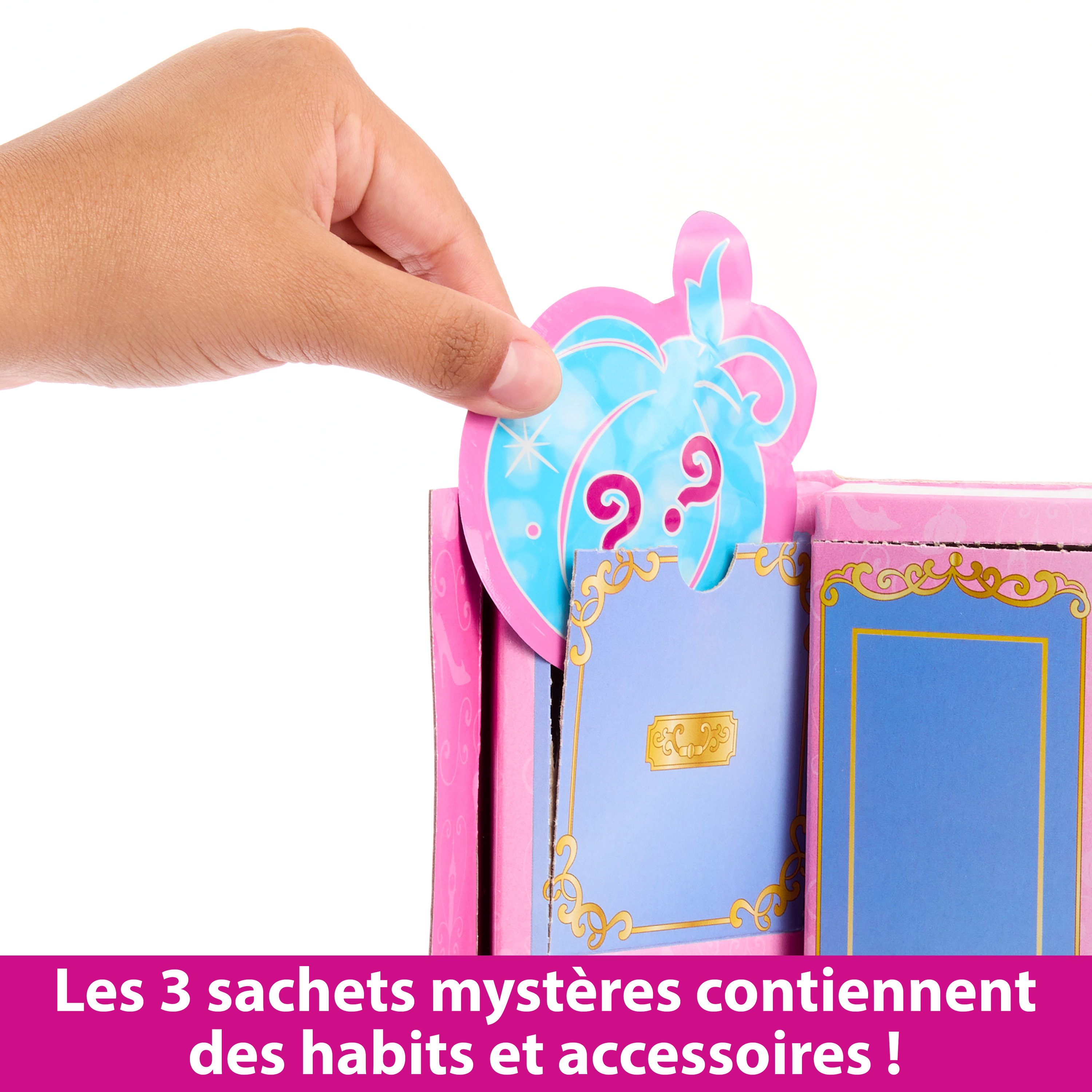 À vous le plaisir de la découverte avec la poupée Cendrillon Royal Fashion Reveal ! Les enfants vont adorer ouvrir l’emballage aux allures de dressing pour découvrir une poupée Cendrillon à la pointe de la mode, un ami inspiré d’un des personnages du film et 12 magnifiques éléments d’habillage et accessoires à combiner pour créer plus de 125 looks uniques. La poupée ne tient pas debout toute seule. Les couleurs et les décorations peuvent varier.