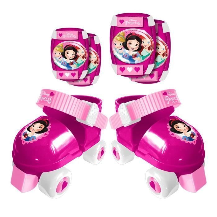 STAMP - DISNEY PRINCESSES Set Patins a Roulettes avec Coudieres/Genouilleres - Patins a roulette, taille ajustable du 23/27 sangles sécurisées Set de protections taille unique avec velcro contenant : 1 paire de coudieres + 1 paire de genouilleres - Fi