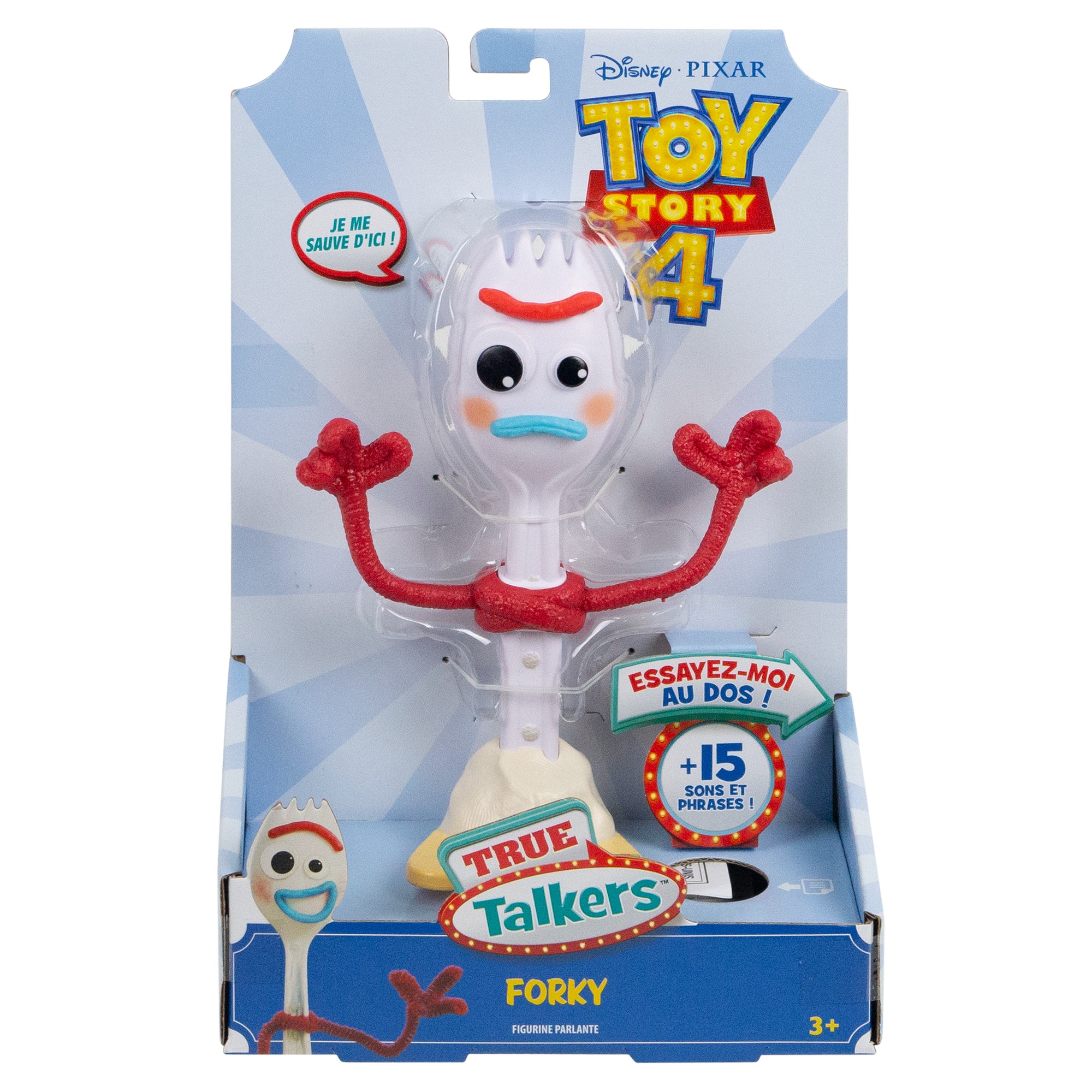 Les fans de Toy Story de Disney Pixar pourront rejouer des scènes du nouveau film avec cette figurine parlante ! Fourchette prend vie avec des expressions faciales vivantes et des répliques cultes comme « Ah. Ouah ! Ce n'est pas si mal d'être un jouet. C'est plutôt sympa.. » Et « On peut arrêter ? Mes pointes sont fatiguées. Revivez vos aventures préférées avec Fourchette et collectionnez aussi Buzz lÉclair et Woody.