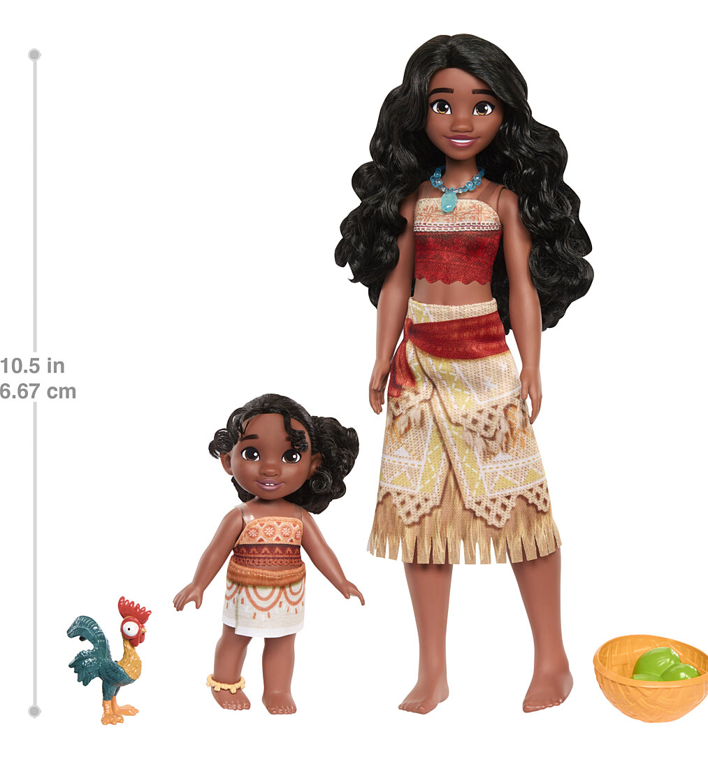 Vaiana 2 de Disney, la suite du film original, explore les thèmes du leadership, du courage et, surtout, de la famille. Les enfants vont adorer découvrir cela et bien plus encore en jouant avec le coffret des sœurs Vaiana et Simea. Les poupées Vaiana et Simea sont incluses, ainsi que Heihei, leur coq rigolo et adorable, et deux accessoires pour recréer le lien inébranlable qui les unit et qui les lie à leur terre, l’île de Motunui. Les poupées portent toutes deux des tenues fidèles au film et ont de magnifiques cheveux ondulés. Les enfants à partir de 3 ans peuvent recréer leurs scènes préférées du film avec Vaiana, sa petite sœur animée, Simea, et le reste de sa famille et de ses amis. (Tous vendus séparément. Certains produits peuvent ne pas être commercialisés.) Les poupées ne tiennent pas debout toutes seules. Les couleurs et les décorations peuvent varier.