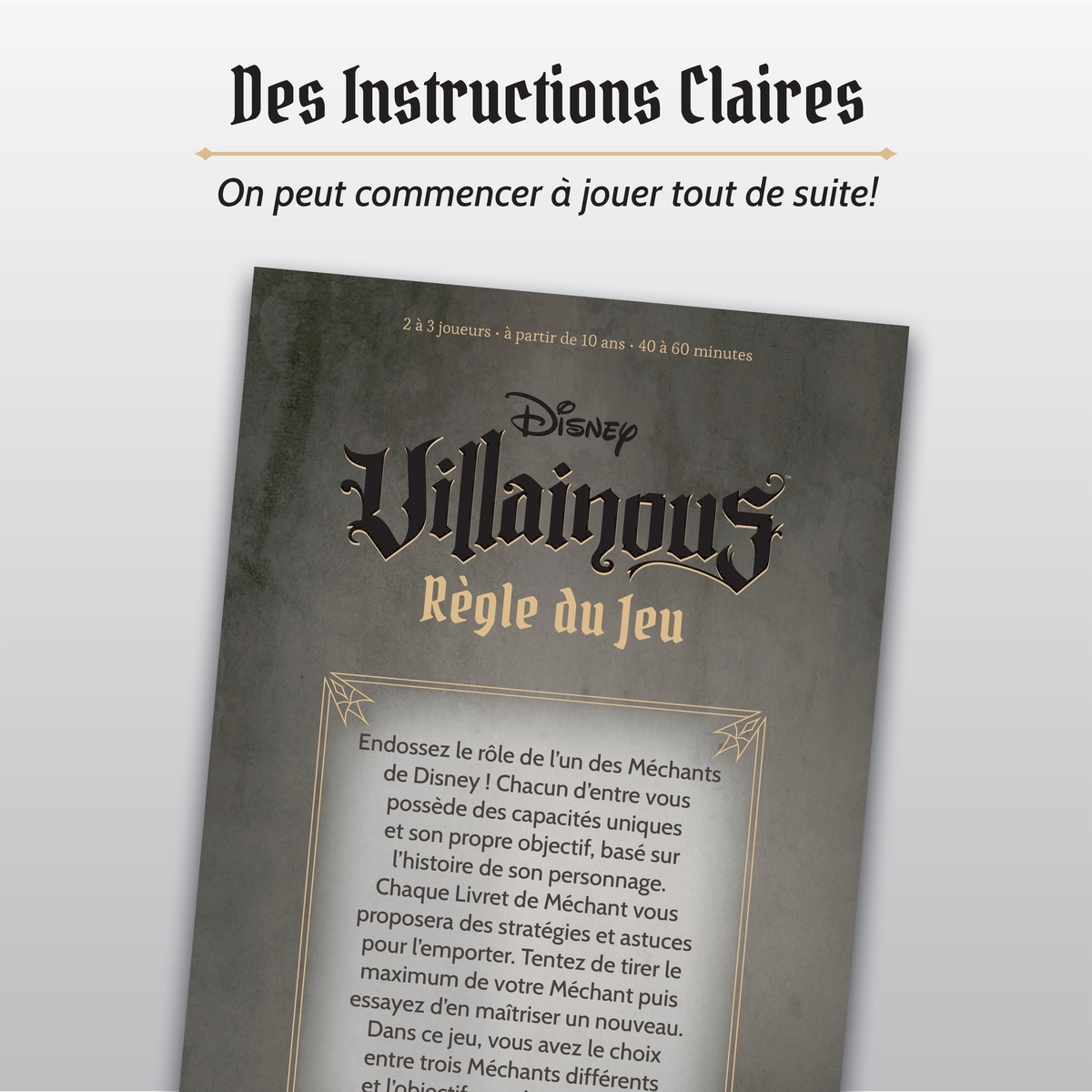 | Plus produit | Retrouvez 3 nouveaux grands méchants Disney ! Un univers riche pour un jeu MA-GNI-FI-QUE ! Une mécanique riche, une multitudes de stratégies possibles et une rejouabilité énorme Excellent aussi à 2 joueurs ! Jouable avec ou sans la version de base. |