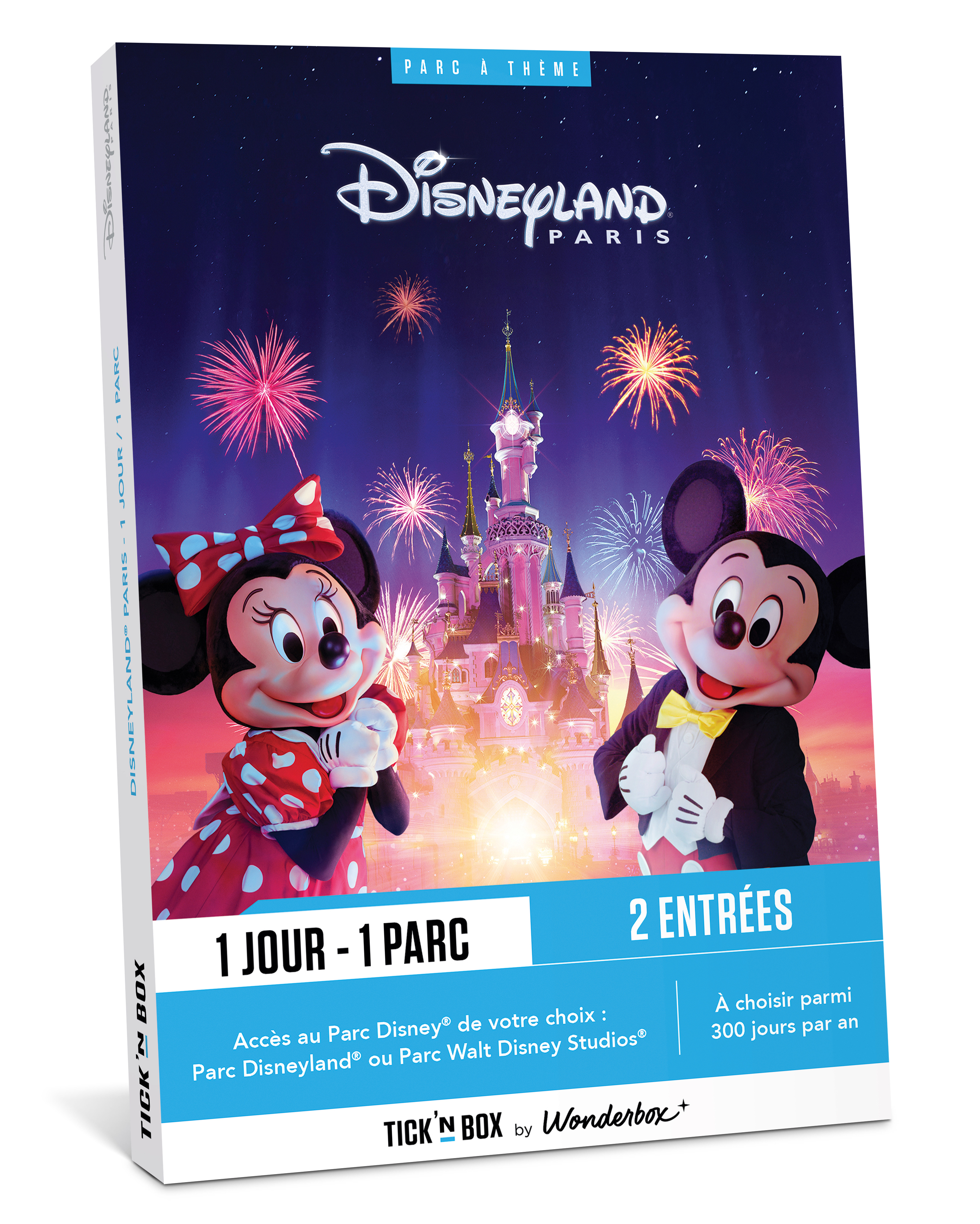 Ce coffret vous permet de réserver 2 entrées pour 1 journée au Parc Disneyland® ou au Parc Walt Disney Studios®. Les tarifs de Disneyland® Paris pouvant évoluer tout au long de l’année*, un supplément par rapport au prix de ce coffret pourra vous être demandé au moment de la réservation.