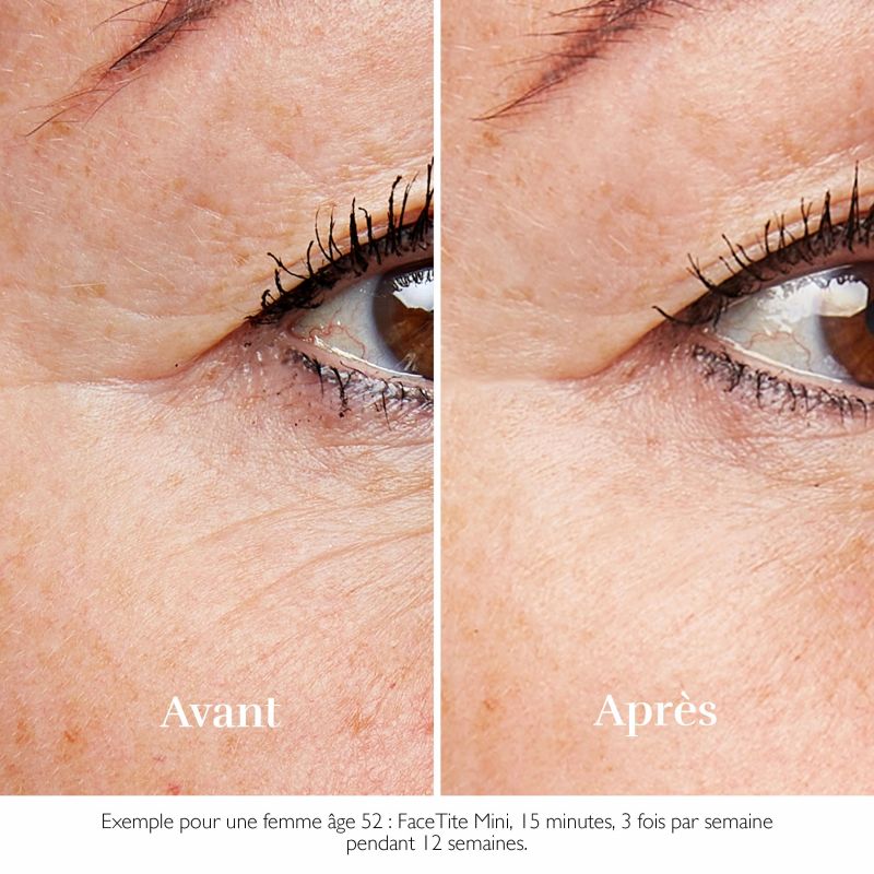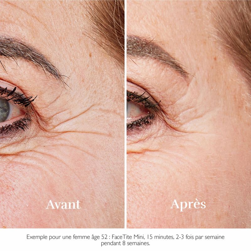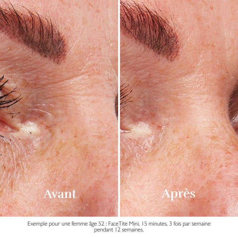 Cela fait 9 semaines que j'utilise le Facetite mini et je ne constate aucune amélioration. Peut être légèrement sur le moment mais ça ne dure pas du tout. D'autant plus que son utilisation est fastidieuse, à raison de 3 fois par semaine, 5 minutes par zone, si on veut faire au moins le contour des yeux+le contour de la bouche et la ride du lion, c'est trop long pour quasiment aucun résultat. J'avais hésité avec l'appareil pour le visage et j'ai voulu déjà commencé par le mini pour voir... Et bien je n'achèterai pas l'autre.
