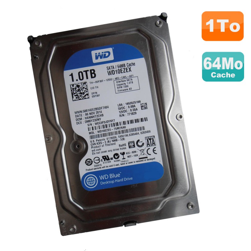 Disque Dur 1To WD Blue SATA III 3.5" WD10EZEX-75M2NA0 05P30F 5P30F 7200RPM 64Mo