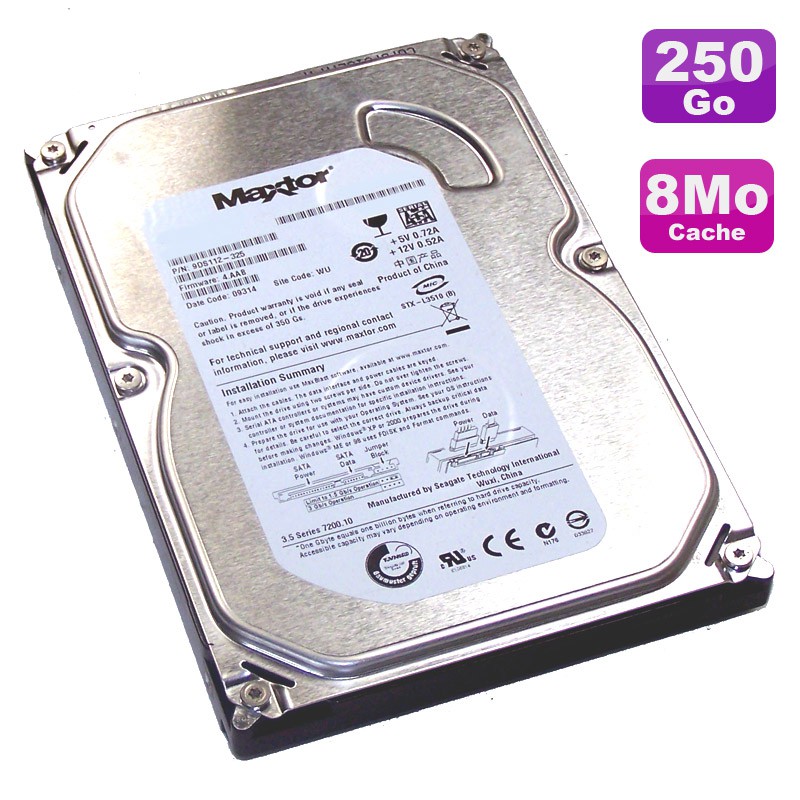 | Libellé | Disque Dur 250Go SATA 3.5" Maxtor DiamondMax 23 STM3250318AS 7200RPM 8Mo |