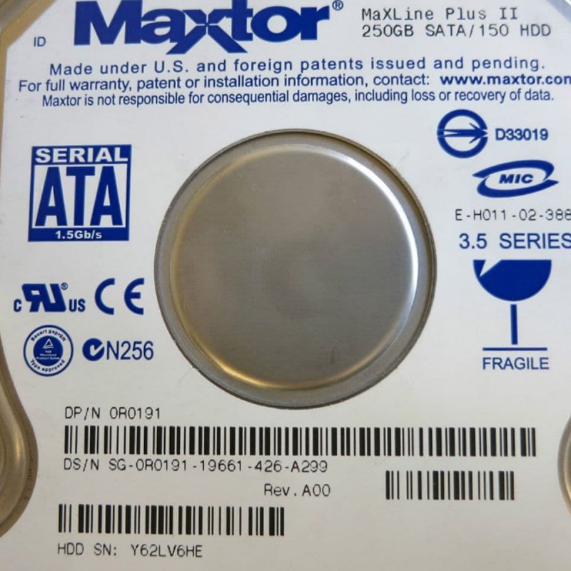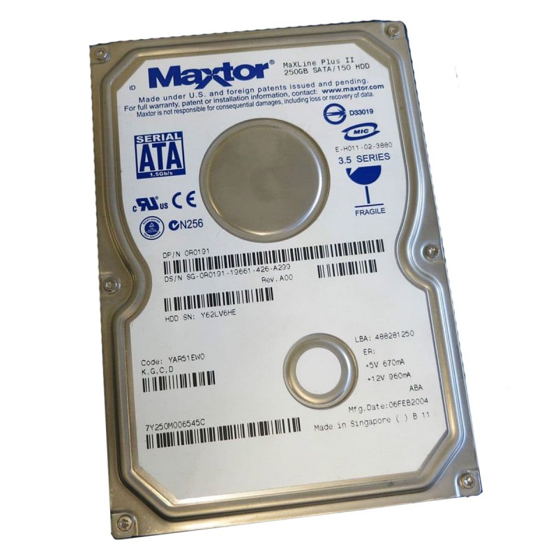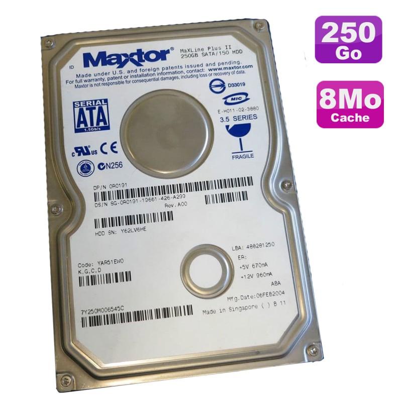 | Libellé | Disque Dur 250Go SATA 3.5" Maxtor MaXLine Plus II YAR51EW0 0R0191 7Y250M0 8Mo |