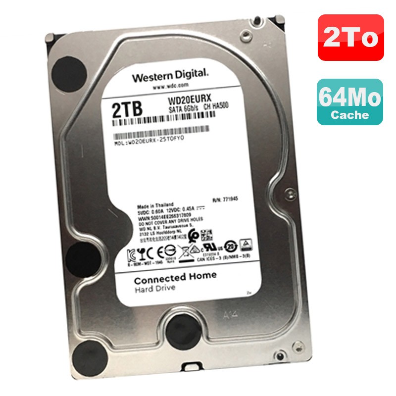 | Libellé | Disque Dur 2To SATA III 3.5" Western Digital Connected Home WD20EURX 5400RPM |