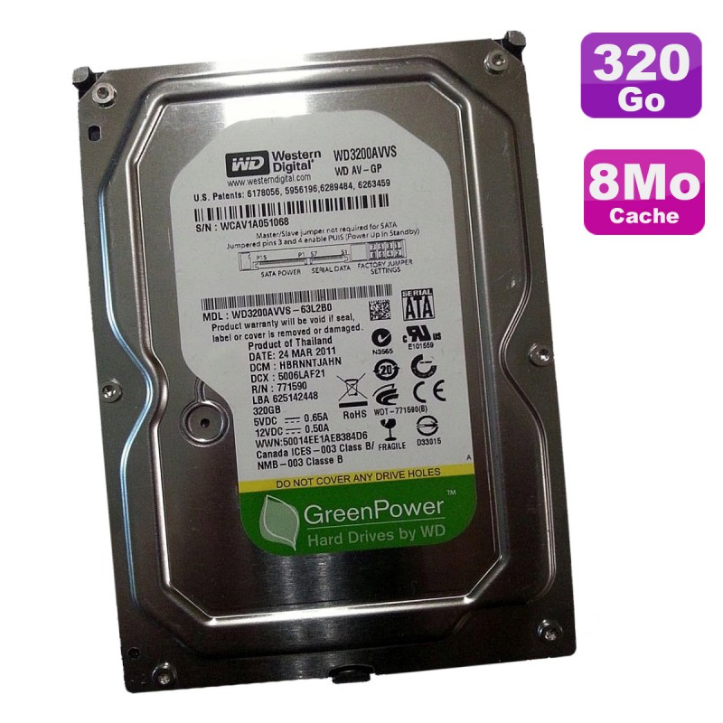 | Libellé | Disque Dur 320Go SATA 3.5" Western Digital GreenPower WD3200AVVS-62L2B0 7200 8Mo |