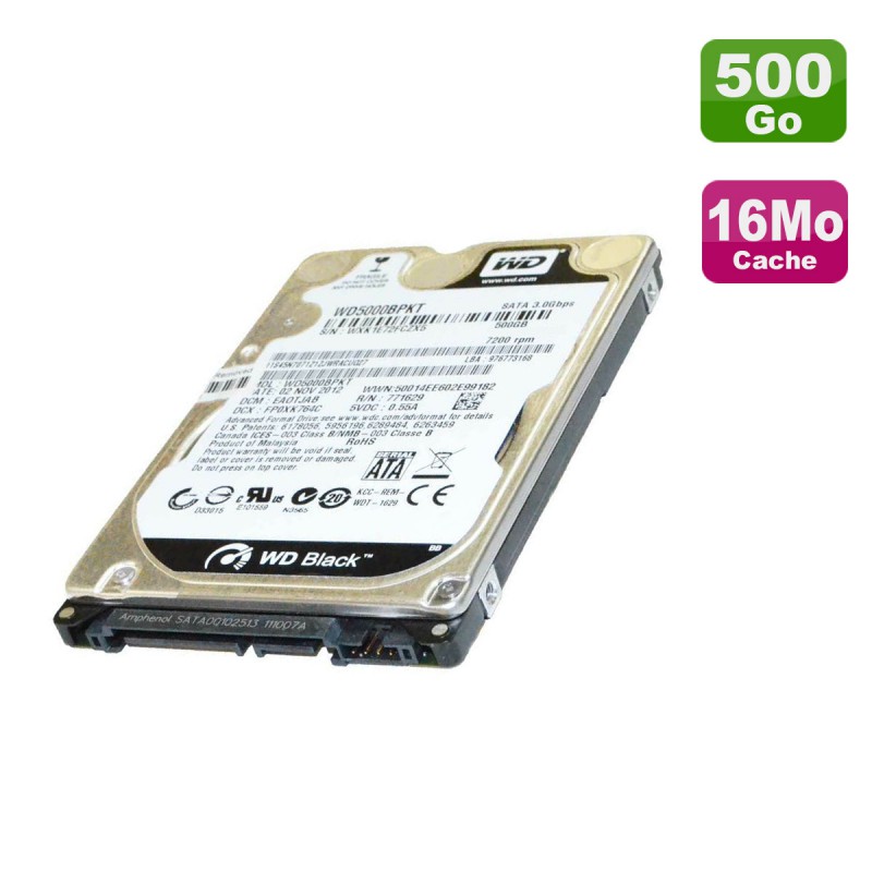 | Libellé | Disque Dur 500Go SATA 2.5" WD Black WD5000BPKX-66HPJT0 HP 696002-002 745135-001 |