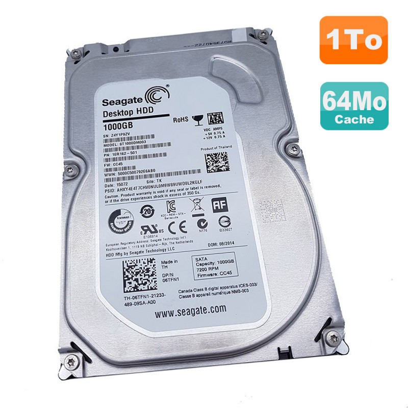 | Libellé | Disque Dur Seagate 1To SATA 3.5" ST1000DM003 Dell 1ER162-501 06TFN1 6TFN1 CC45 |