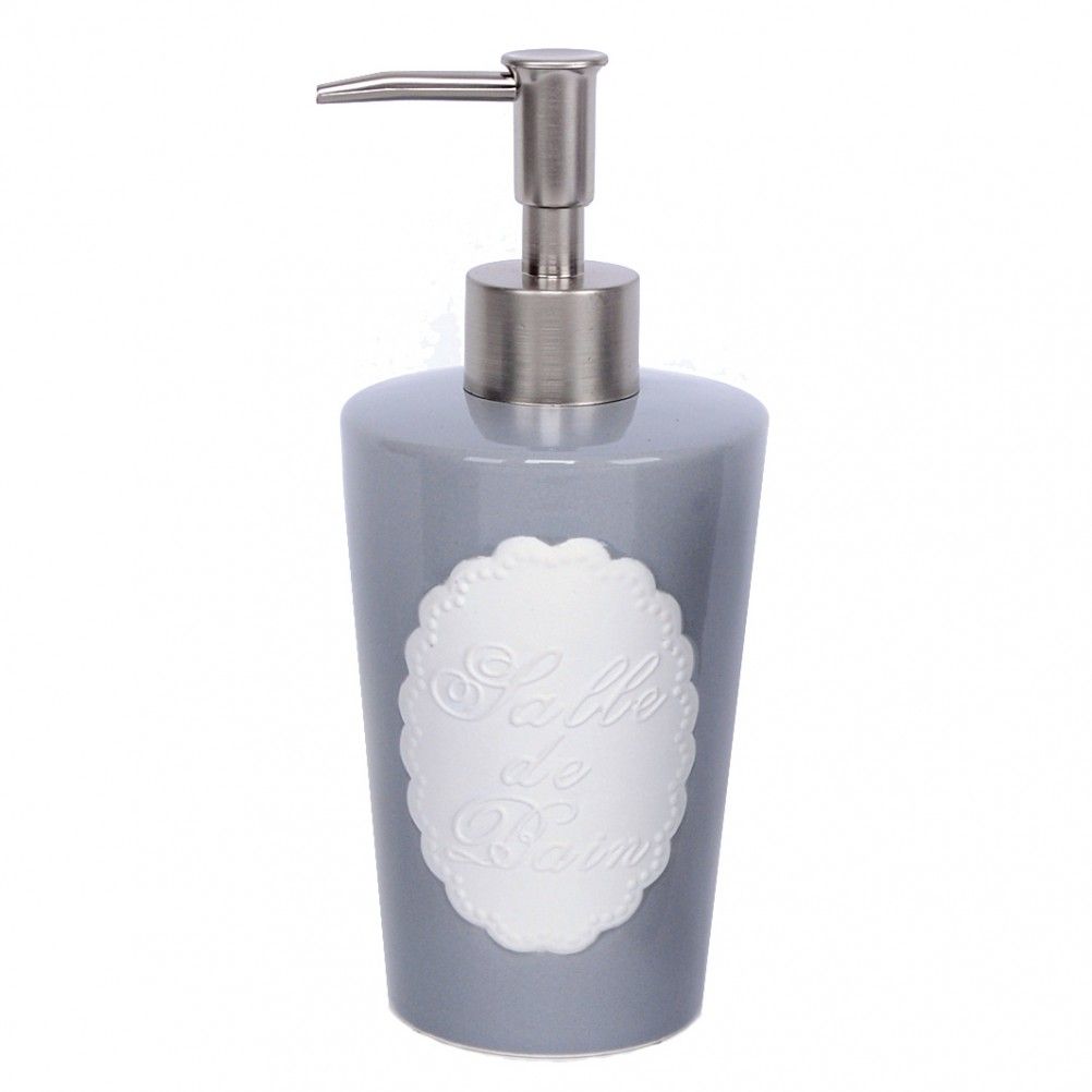 Distributeur à savon gris En céramique et Plastique Dim : 7.5 x 18.5 cm