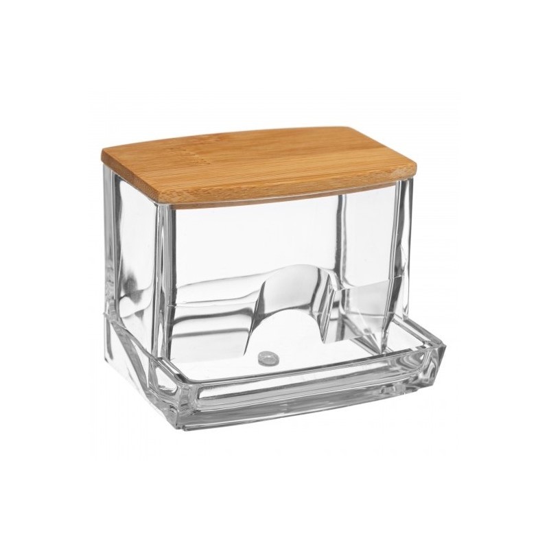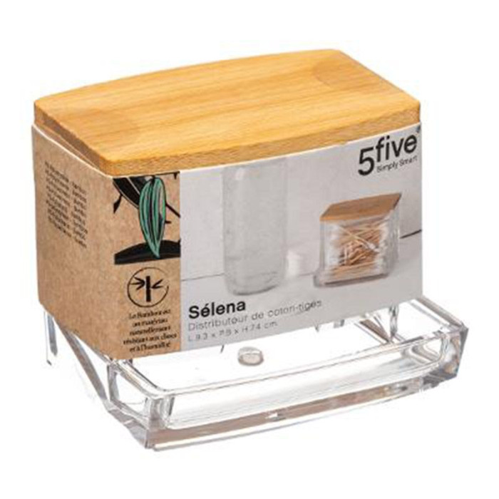 Distributeur de Coton-Tiges Bambou "Selena" 9cm Transparent