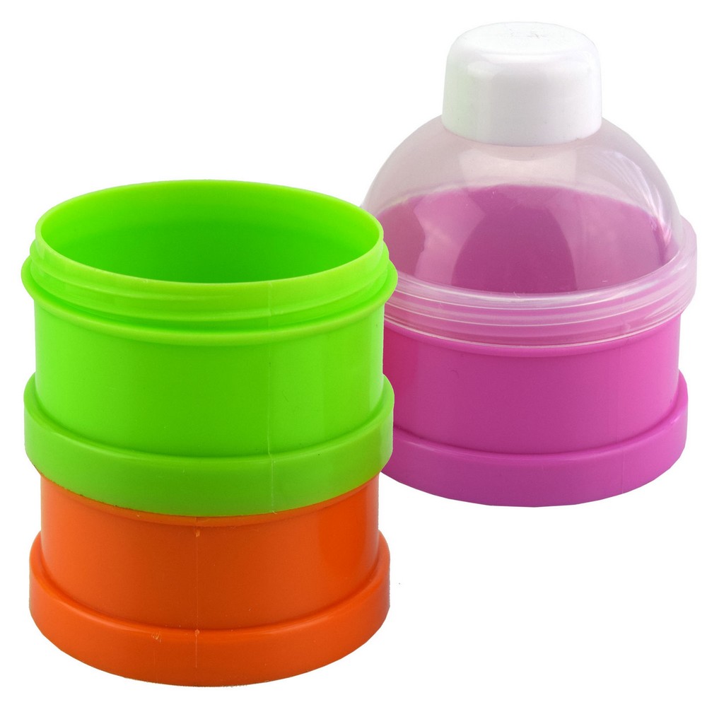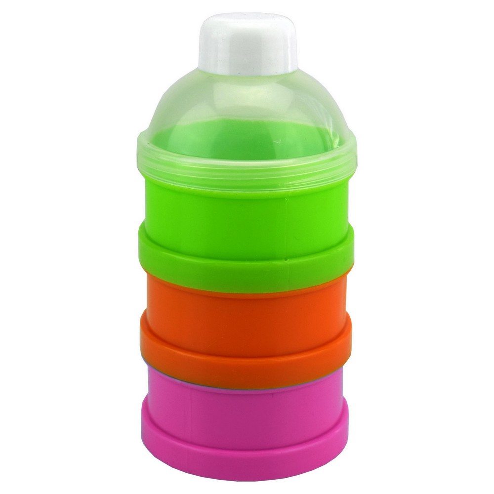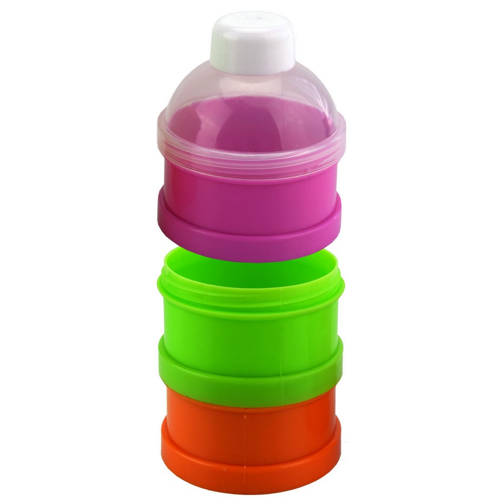 Hygiénique et très pratique pour transporter les doses de lait nécessaires aux repas 3 compartiments hermétiques et empilables Taille: 23.5 x 7 cm COLORIS ALEATOIRE